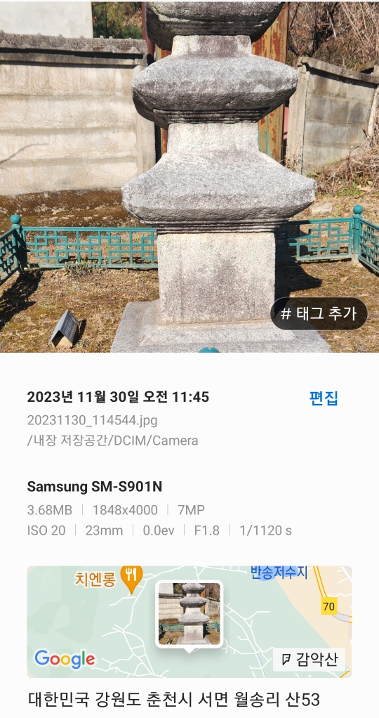 춘천시 문화예술과 : 033-250-3062강원도 문화재자료시대 : 고려시대 규모/양식 : 높이 1.8m재료 : 화강석소유자/관리자 : 국유/춘천시수량 : 1기 강원도춘천시탑춘천시