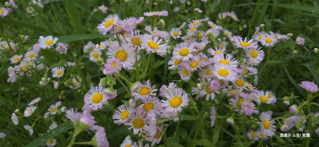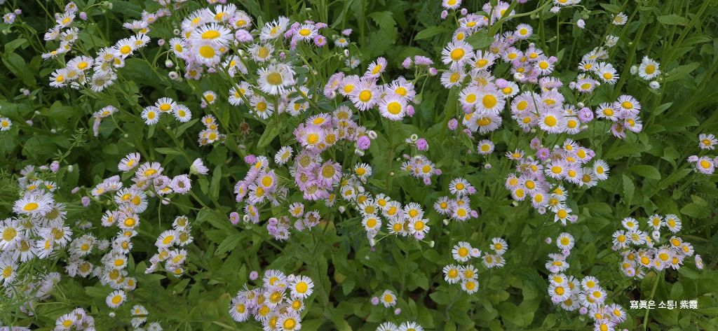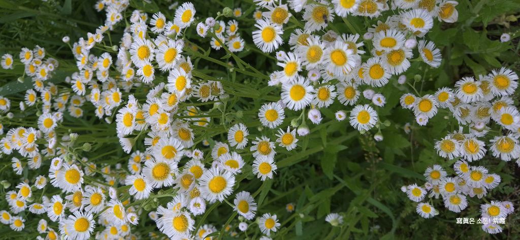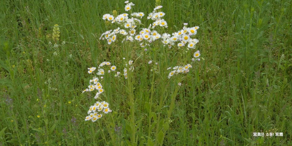 비교: 개망초와 비교했을 때 혀꽃의 수가 더 많고, 줄기의 속이 비어 있는 것이 특징.