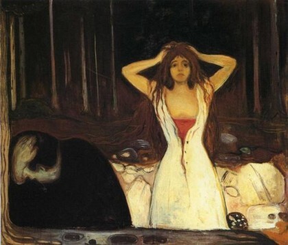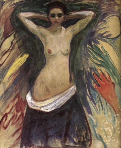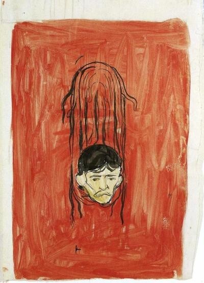 뭉크는 이탈리아 여행 후 독일로 가게 될 기회를 갖게 된다. 1892년 베를린에서 예술적이면서도 문학적인 단체들과의 교제를 통하여 신비주의와 환상적인 경향의 감정을 발표하고 있다. 이 무렵 제작한 것으로 실재적인 인간을 표현하면서도 공간 속에 떠 있는 듯한 인물의 묘사는 탐미적(耽美的)인 세계에 몰입되어지는 내면 세계를 느끼게 한다. 뭉크는 많은 인물화를 그렸는데, 항시 생존의 의미를 존중하며, 인간을 위한 예술을 창조하였다. 전체적으로 간결한 형태에 의한 단순한 표현은 주제를 확대시켜 주는 반면에 얼굴의 섬세한 사실성과 손, 발의 생략되어진 묘사는 상반된 조화를 강하게 느끼게 하여 준다. 주관적인 감정이 내용과 형태를 결정한다는 기조를 적절하게 나타냈으며 뭉크의 내재된 가능성을 찾을 수 있다.
