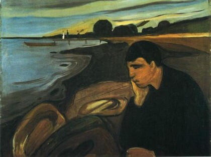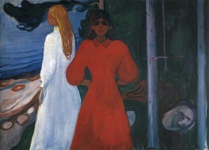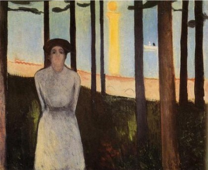 본래는 <여름밤의 꿈>이란 제목의 작품으로서 사랑의 연작 중 한 작품이다. 뭉크는 간혹 자연 속에 인물을 상징화 시킴으로써 자연에 대해 공명(共鳴)하는 한편, 인간의 심리적이고 정신적 경험을 시각화하려 하였다. 여기서 표현된 여인은 체념한 여인으로서, 고독과 슬픔에 찬 모습으로서의 삶을 갈망하는 상(像)인 것이다. 바다를 배경으로 하여 달기둥이 자주 등장 되어지는데 이것은 달에서 해로, 음(陰)에서 양(陽)으로 변화하여 이미지를 변화시킨다. 동경(憧憬)과 고독, 불안에 차 있는 여인이 소나무 앞에 우뚝 서 있는 것이 멀리서 보트놀이 하는 남녀의 행복의 소리를 듣고 있는 듯하다. 수직적인 나무와 수평선의 바다 구성은 여인을 친근 성 있으면서도 더욱 돋보이게 하여 준다. 독특한 기법에 의한 좀 색다른 개성있는 작품이다.