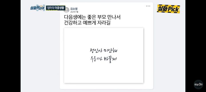 낳았다고 다 부모가 아니다 작성자도라산|작성시간23.02.13|조회수295 목록 댓글 0 글자크기 작게가 글자크기 크게가 두 명의 남자아이를 둔 화목한 20대 부부그러던 어느 날 아이가 아빠에게 믿지 못할 얘기를 함아빠는 설마하는 마음에 홈캠을 확인해 보는데.... 엄마는 7개월 된 아기를 학대하고 있음애를 집어던지고 애가 울어도 아무렇지 않게 핸드폰을 함엄마한테 욕먹고 학대 당해도 엄마가 앉아라고 명령하자그대로 따르는 아기 ㅠㅠ 심지어 장인까지 가담함영상 보면 외갓집 식구들 모여서 아동 학대한 걸 영웅담처럼 애기하고 자기들끼리 웃어댐 ㅋㅋ 그래놓고선 인터넷에선 착한 엄마마냥 코스프레 중....심지어 정인이까지 언급 애들은 현재 아버지와 사는 중....아기들인데 미안해를 입에 달고 삼옷걸이를 때찌라고 기억하는 아기 ㅠㅠ 가장 슬펐던 장면..동생 혼날 때 뒤에서 안아주던 형 다음검색 현재 게시글 추가 기능 열기 북마크 공유하기 신고 센터로 신고 댓글 댓글 0 댓글쓰기 답글쓰기 댓글 리스트