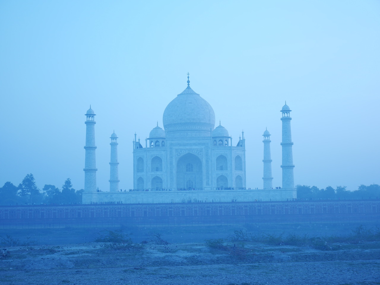 강 건너의 타지마할, 푸른빛이 돌아 더 신비해 보입니다. -