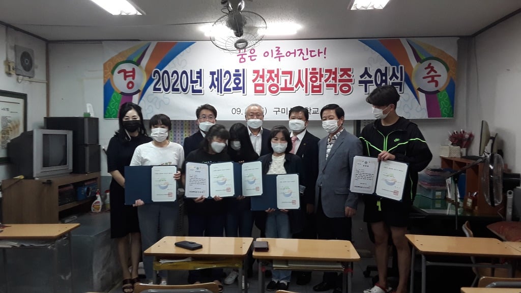 그동안 남편에게 가족에게도 말도 하지 못하고 교장 선생님에게도 차마 말을 하지 못해 중학교과정 공부를 하였던 것이 었습니다