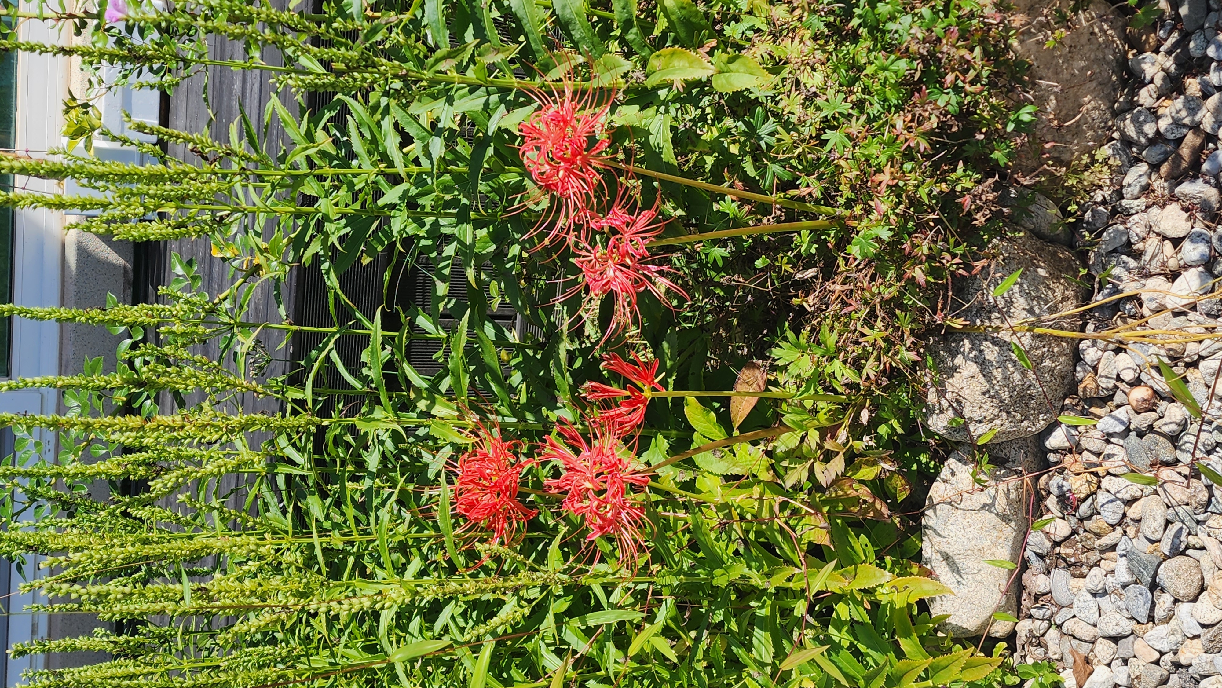 마당귀에 꽃무릇 한웅큼. 여름이 다 갔다는 전령이다.