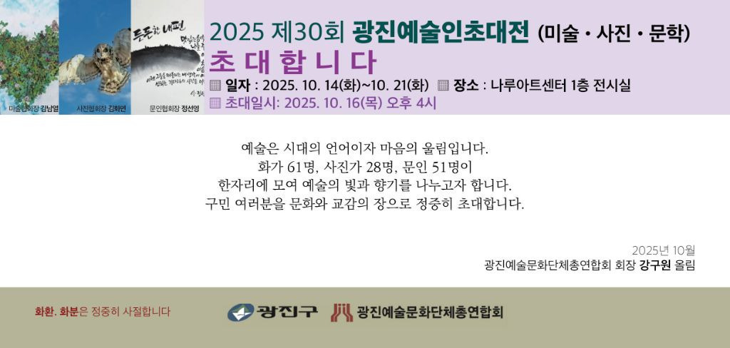 해마다 가을이면 광진예술인 초대전이 열린다.