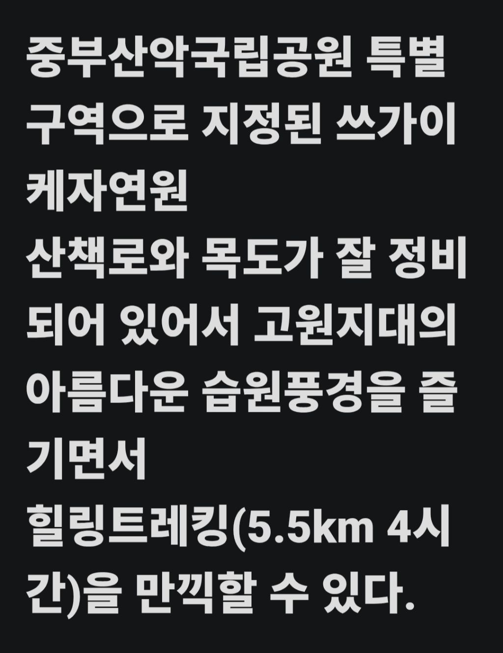 높은 산은 로프웨이로 올라 트레킹하고,트레킹 코스는 본인 체력에 맞게 조절 가능함*