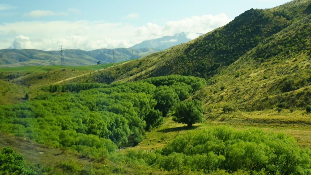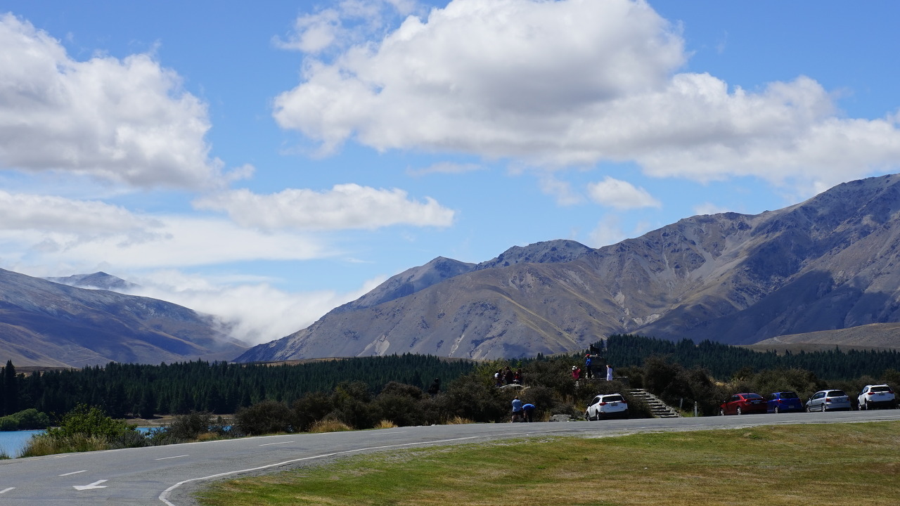 푸카키 호수를 지나 조그만 고개를 넘어가자 사막과 같이 건조한 들판이 나오는데 태즈만 해협에서 습기를 먹은 공기가 서든