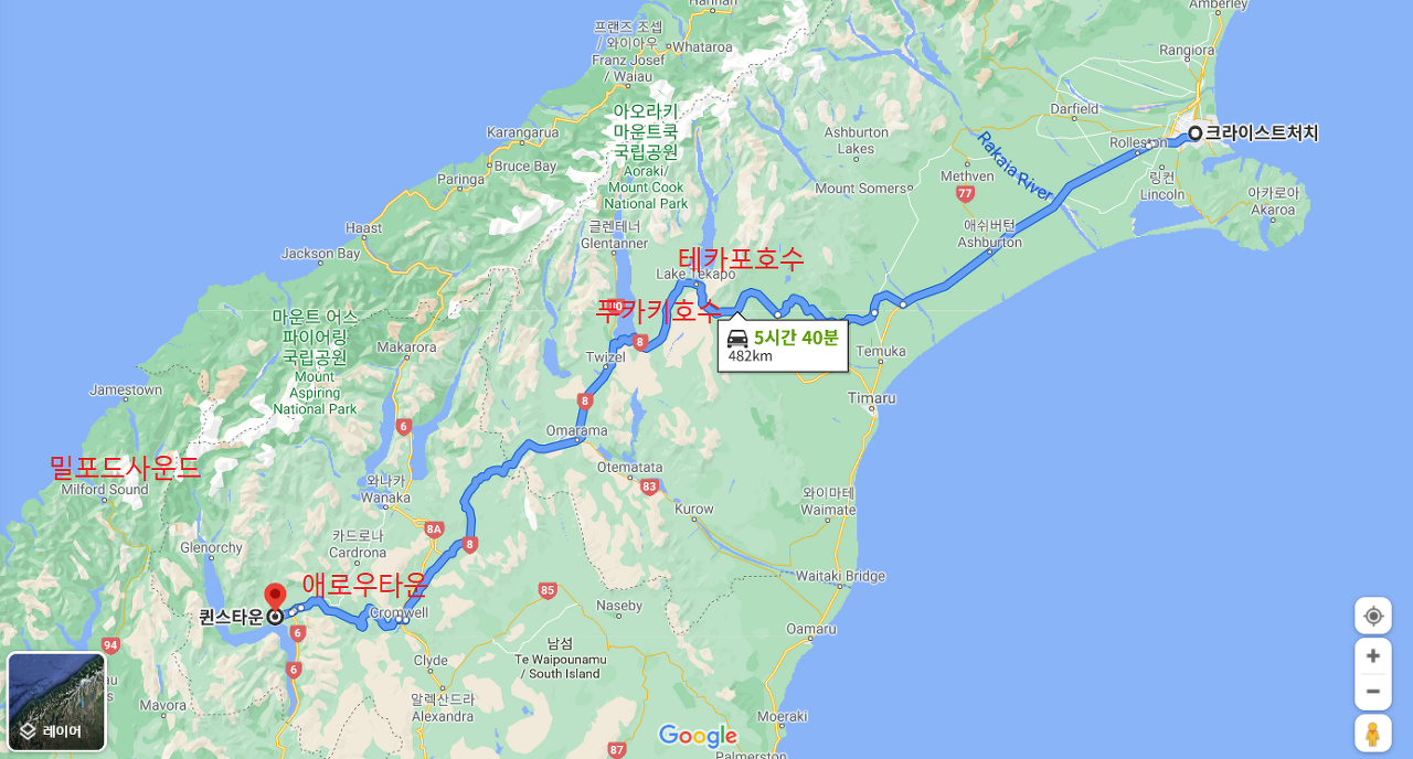 아침 7시에 퀸스타운을 출발하여 5시 경에 크라이스트처치에 도착을 하였으니 11시간이 걸린 셈이다.