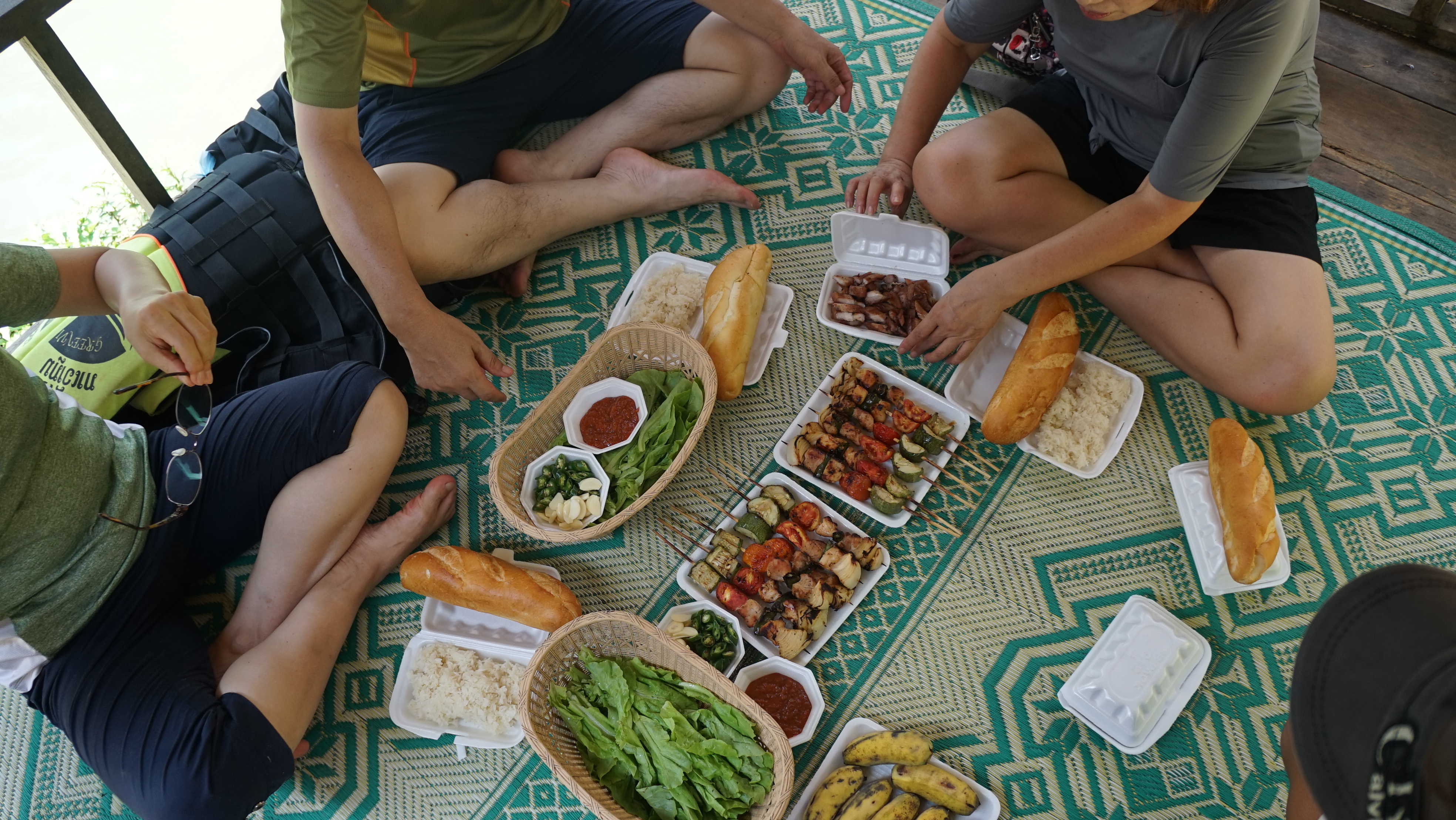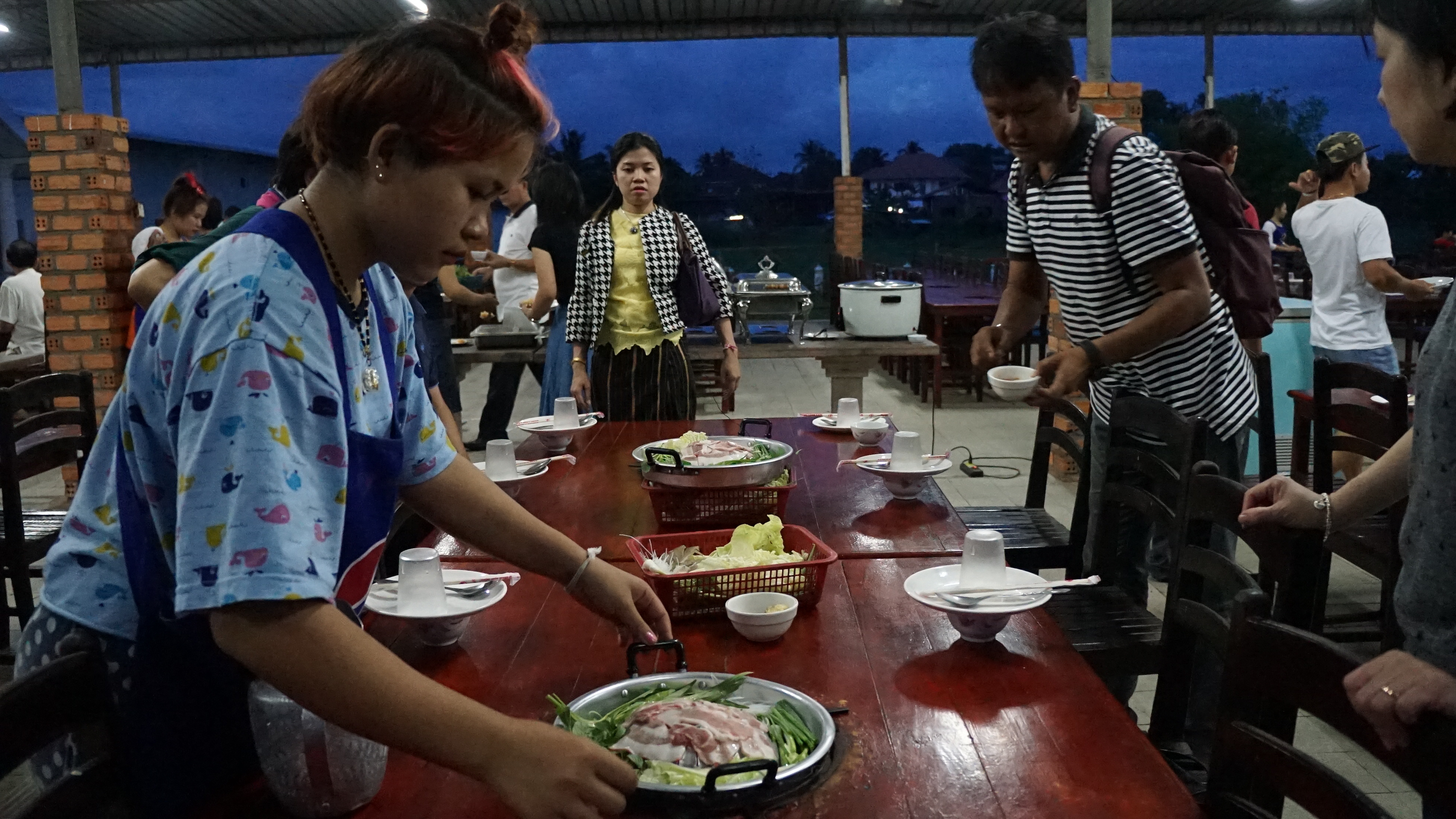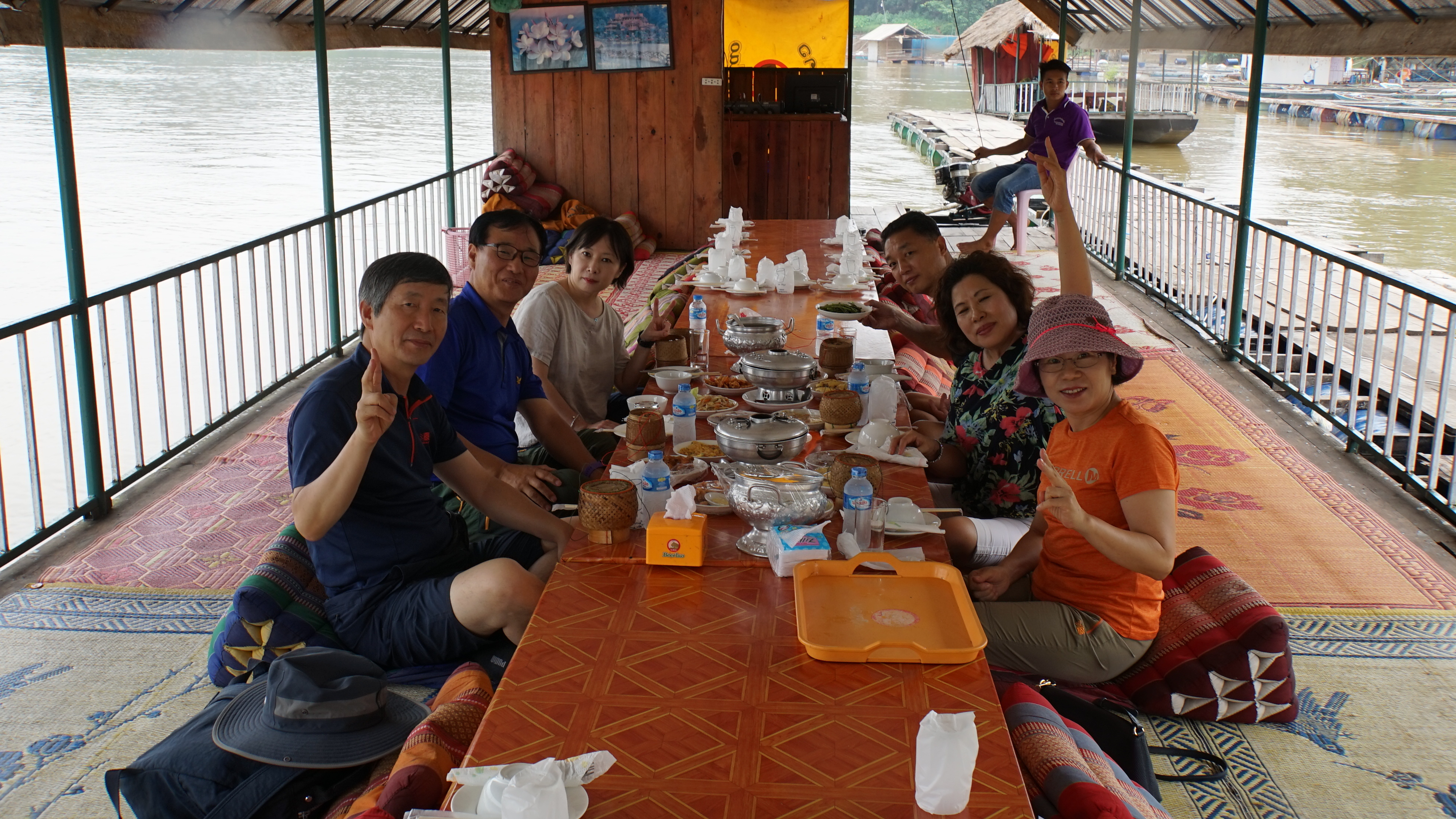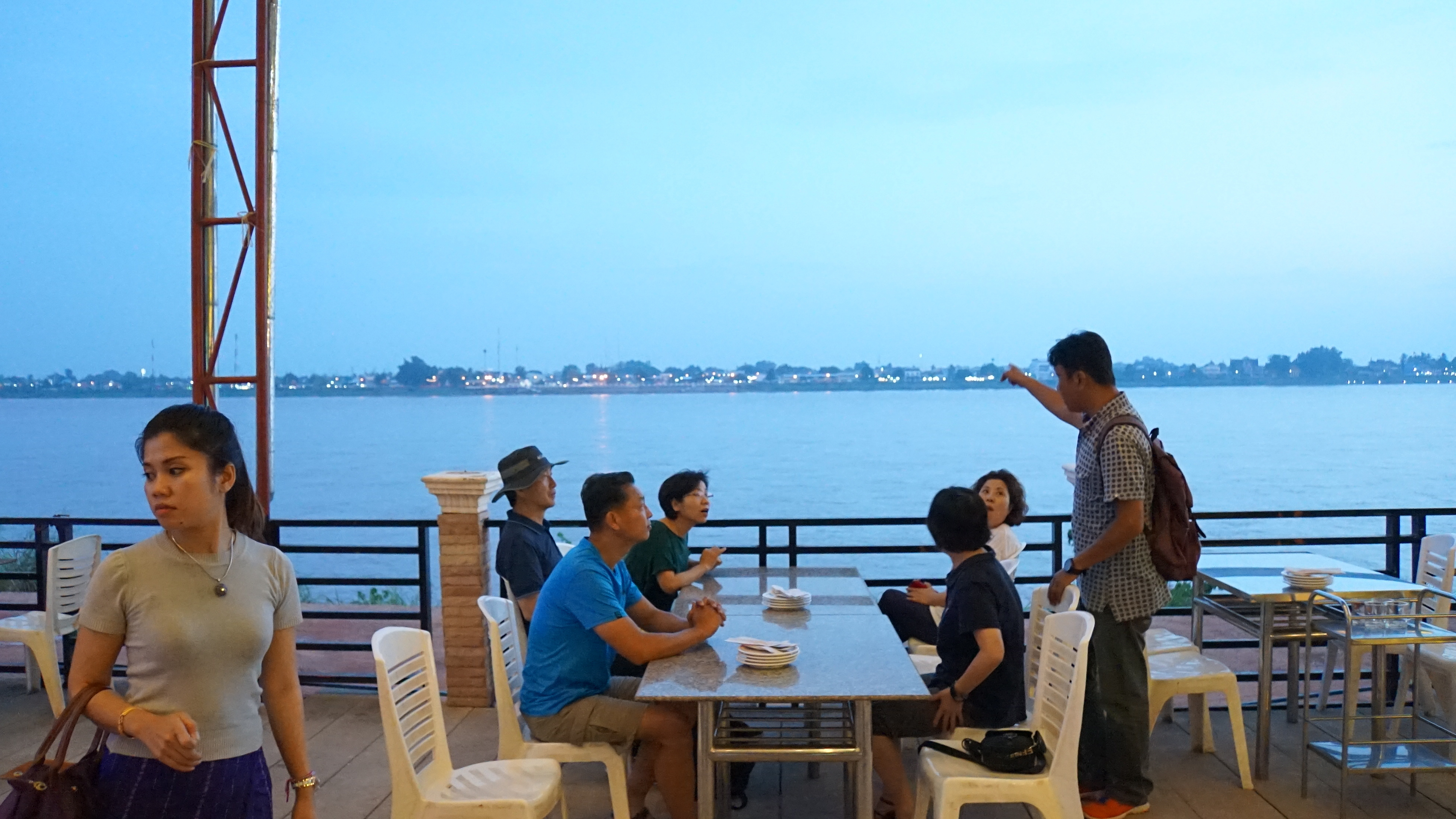 메콩강 건너 태국이 보이는 강변에서의 저녁식사