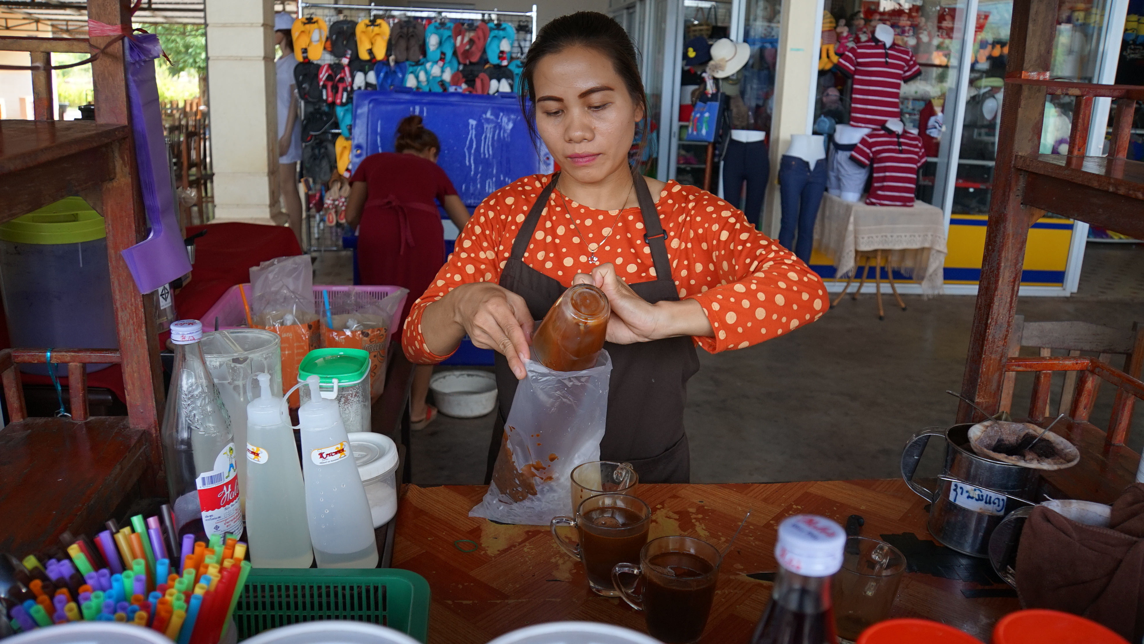 방비엥 가는 길의 휴게소에서 봉지커피를 파는 아주머니...인상이 깊게 남아서
