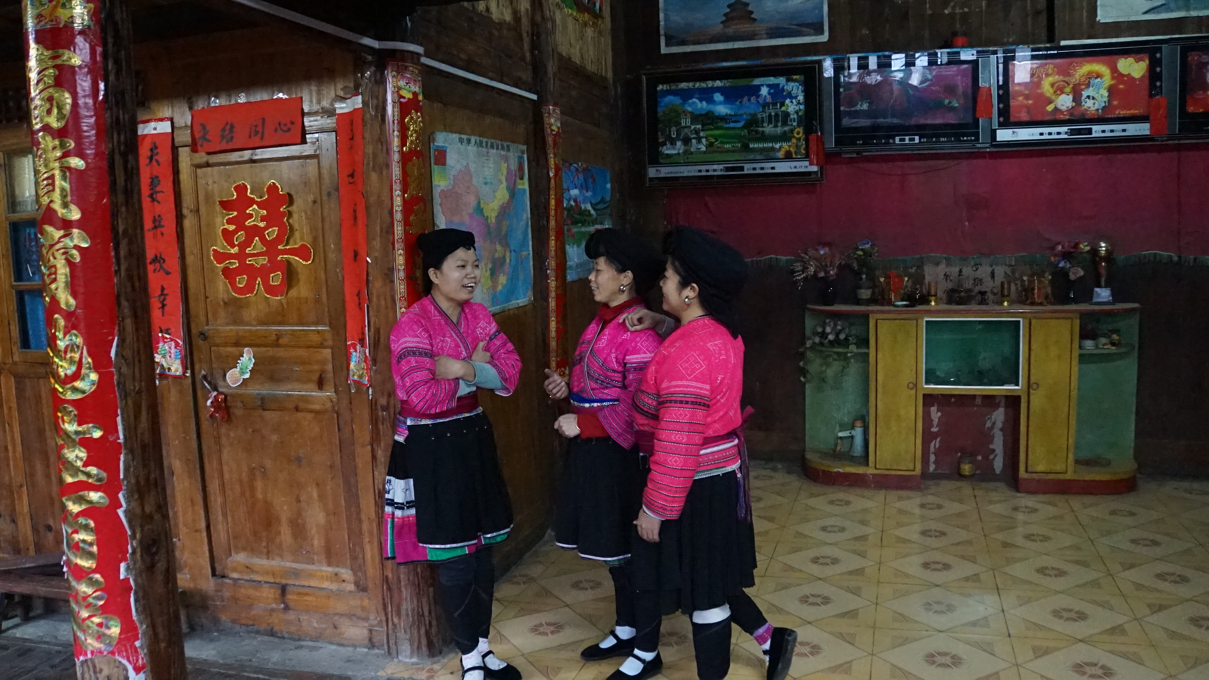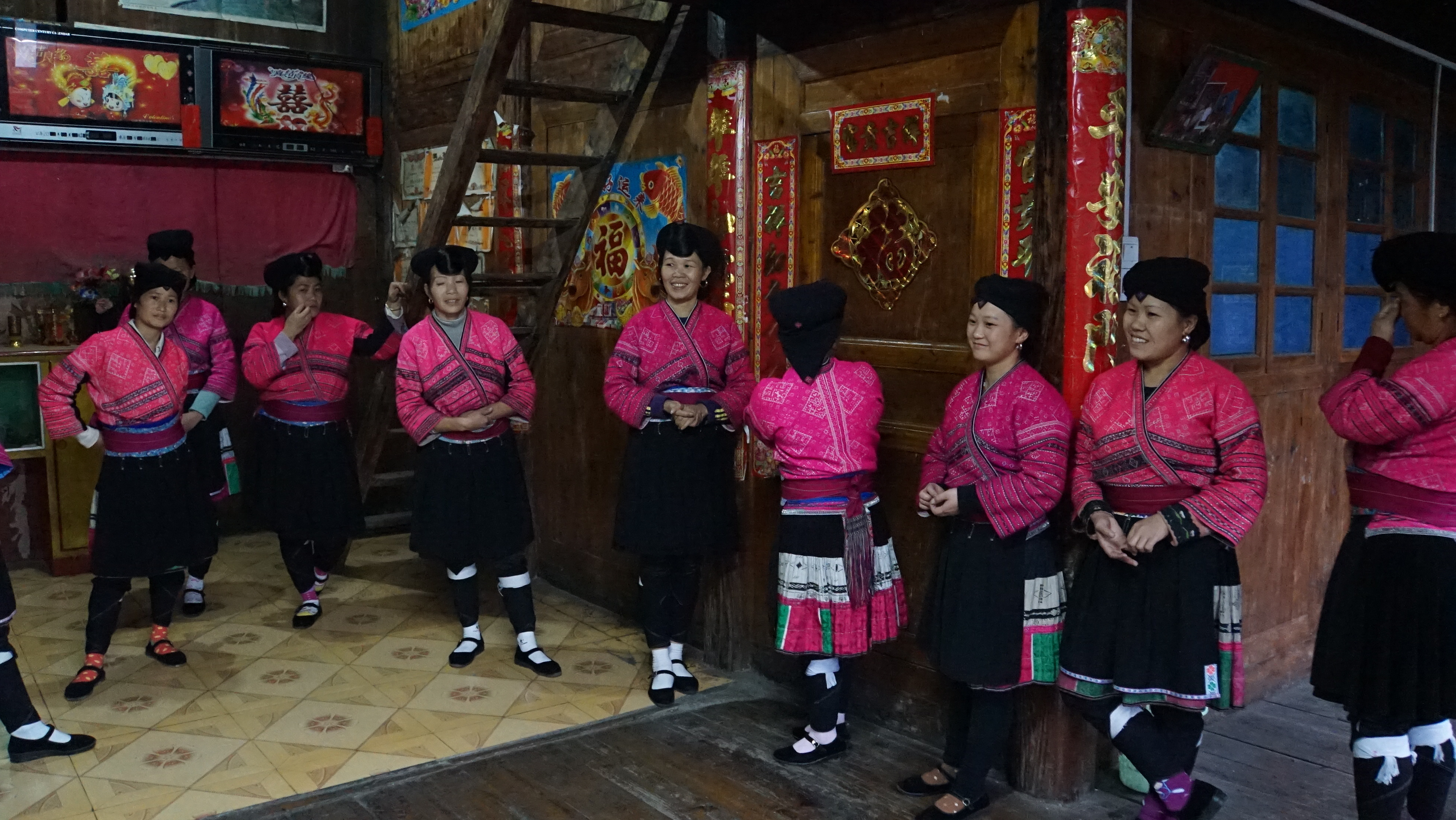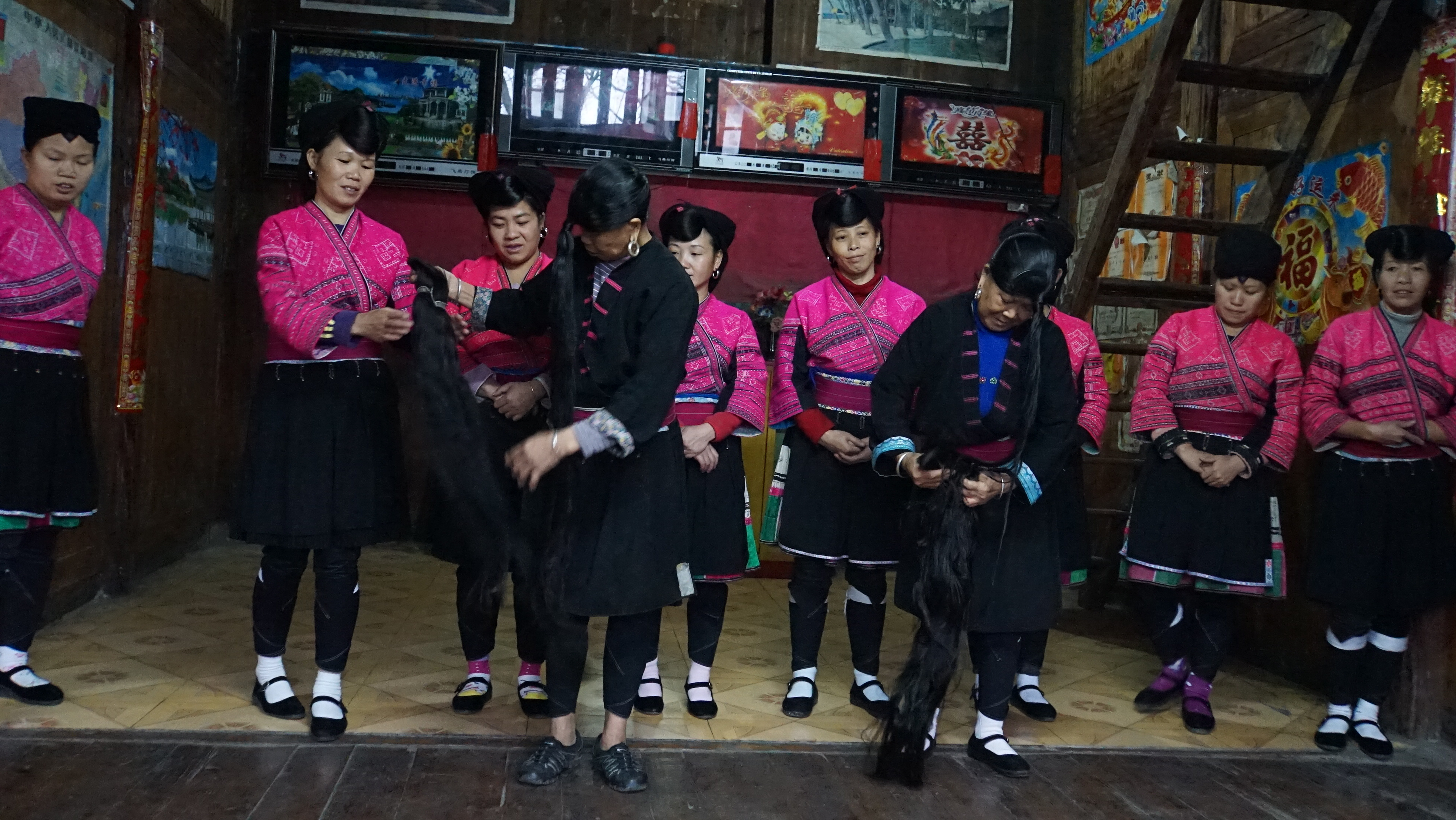 우리들을 상대로 결혼과 관련된 풍습을 춤으로 보여주고 긴 머리를 관리하는 모습을 보여 주는데 나이가 60이 넘은 여자들임에