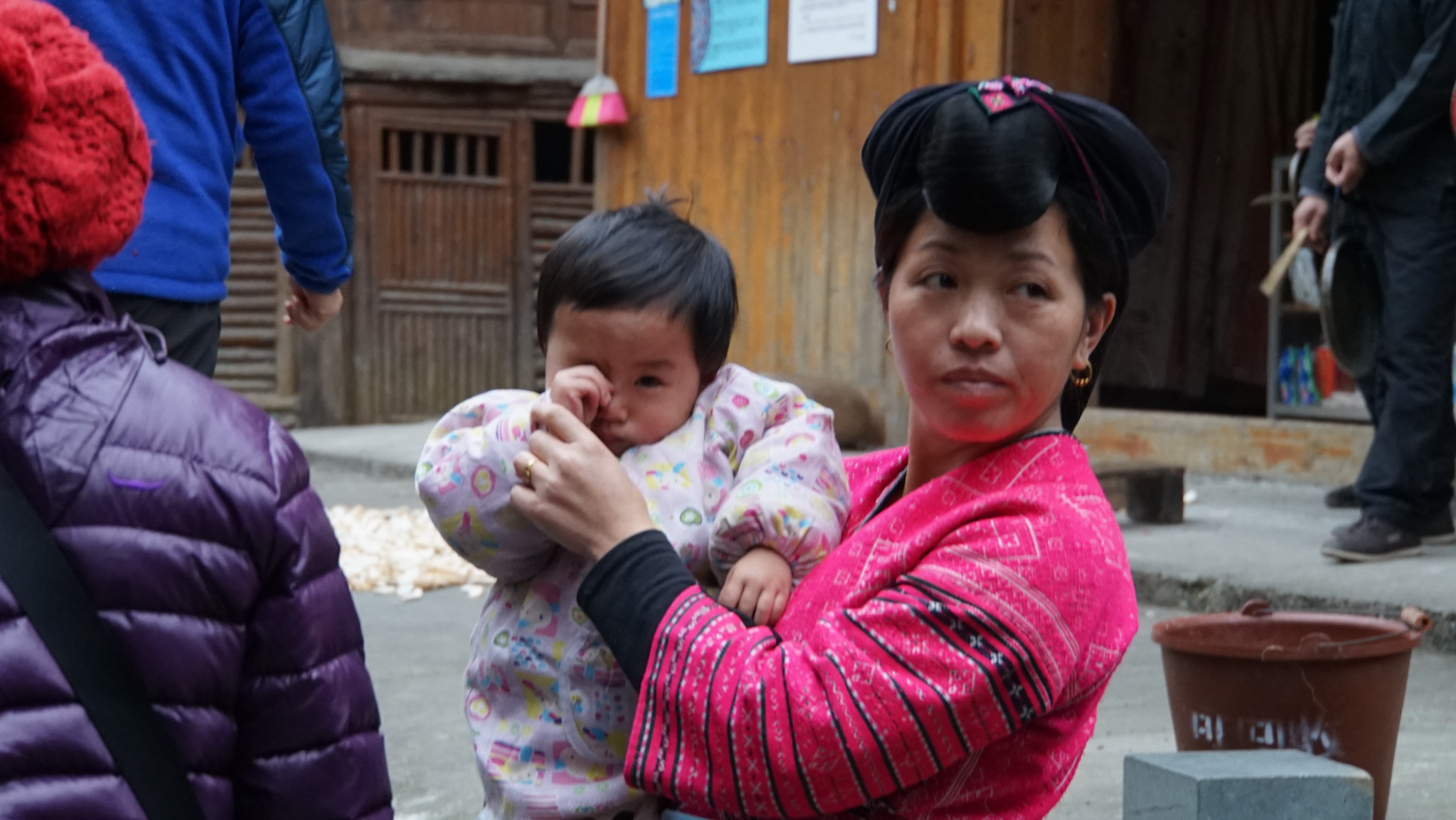 가는 길에 TV에서 자주보는 긴 머리를 둘둘말고 살아가는 사람들이 살고 있는 야오족마을을 들러 간다. 일주문 같은 것을 거쳐 들어간다.