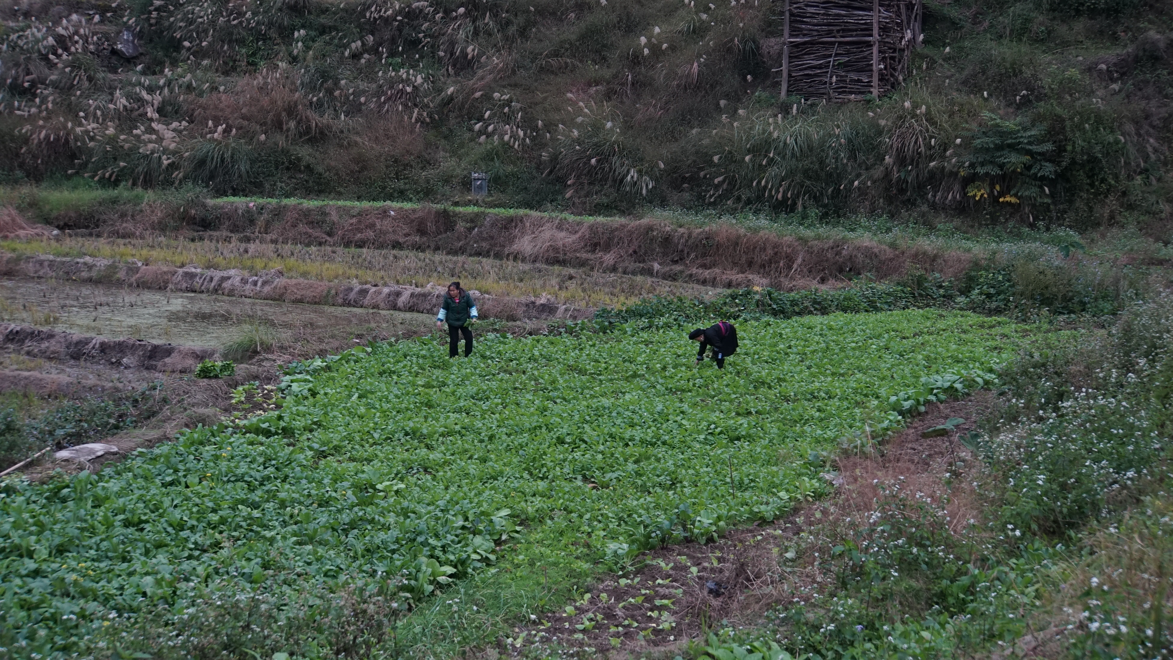 내려오는 길에 옆에 있는 열무 밭