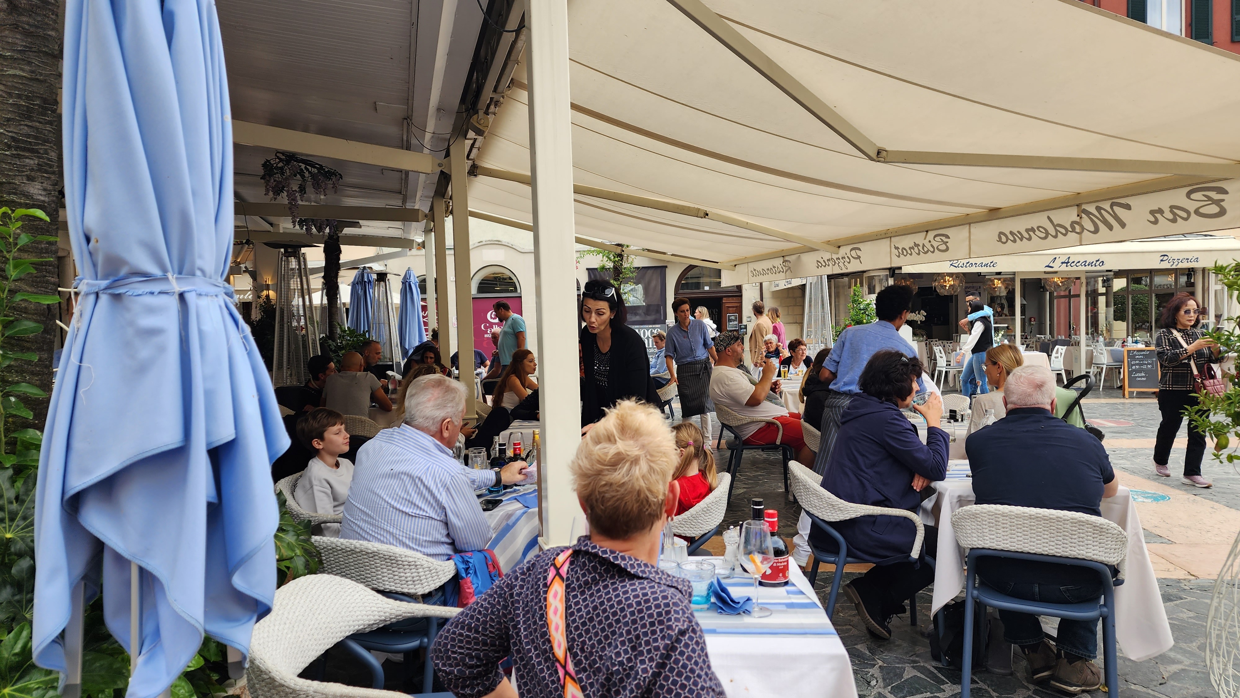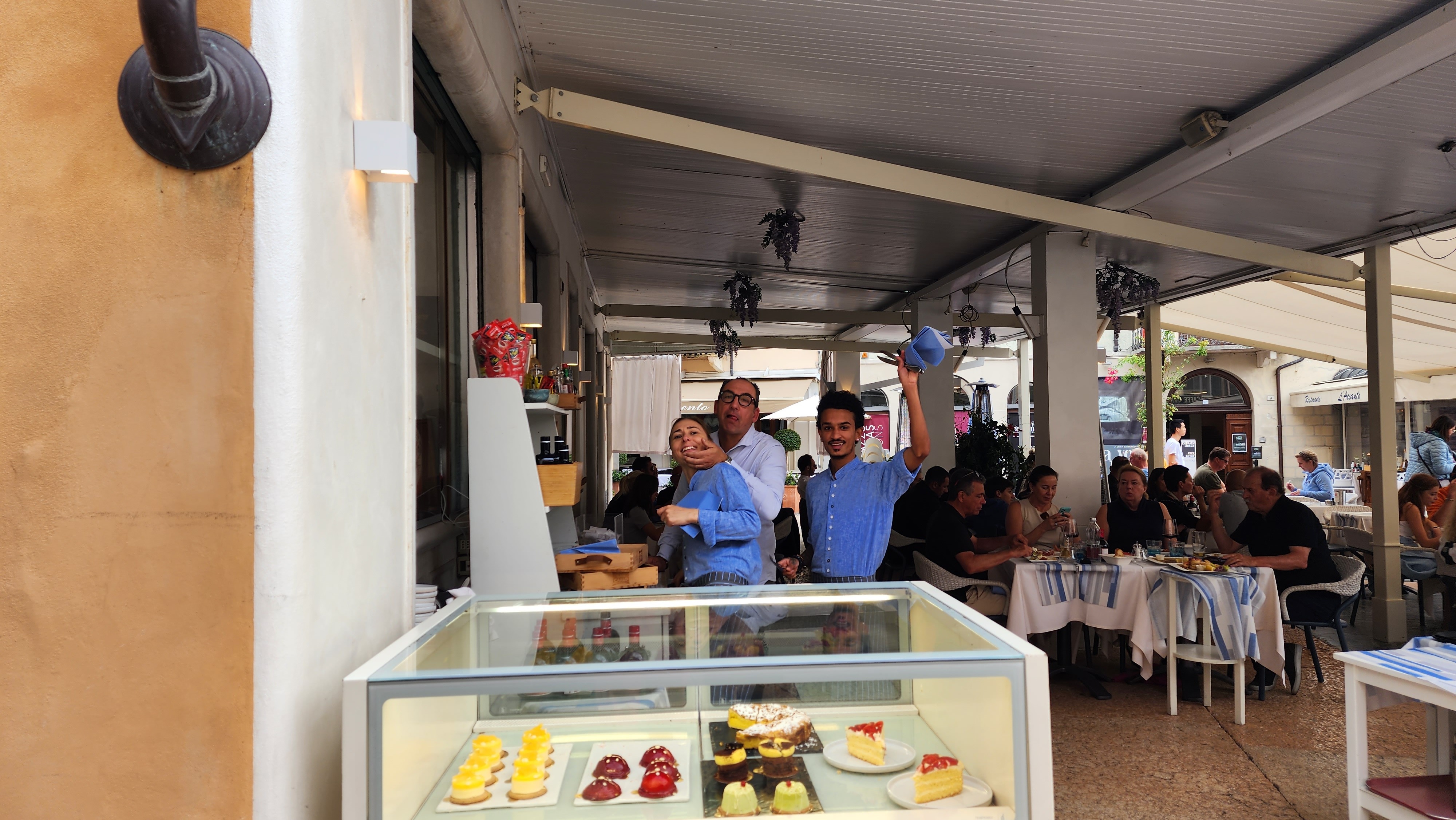 관광객들을 부르는 종업원들