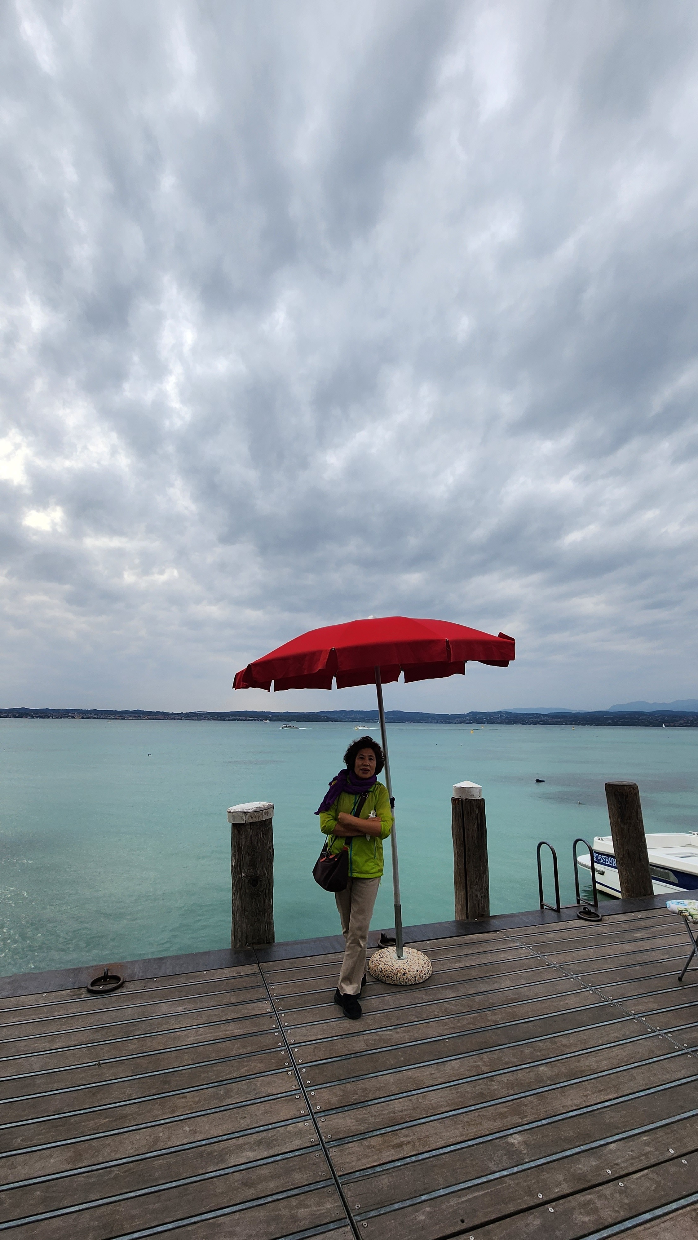 가르다 호수를 배경으로