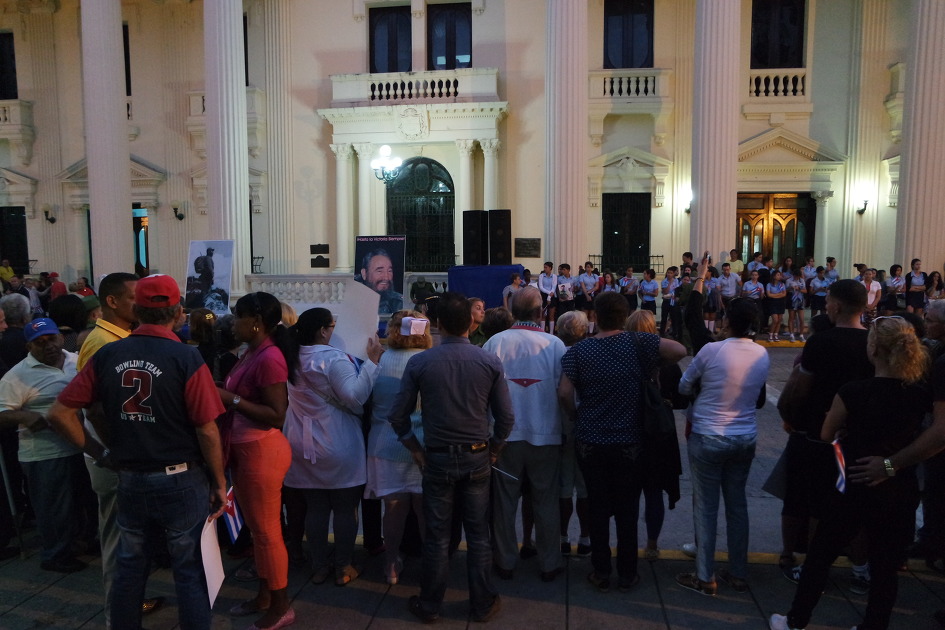 어제 행사 준비를 하였던 건물은 바로 카스트로의 영결식을 하기 위한 준비였다.