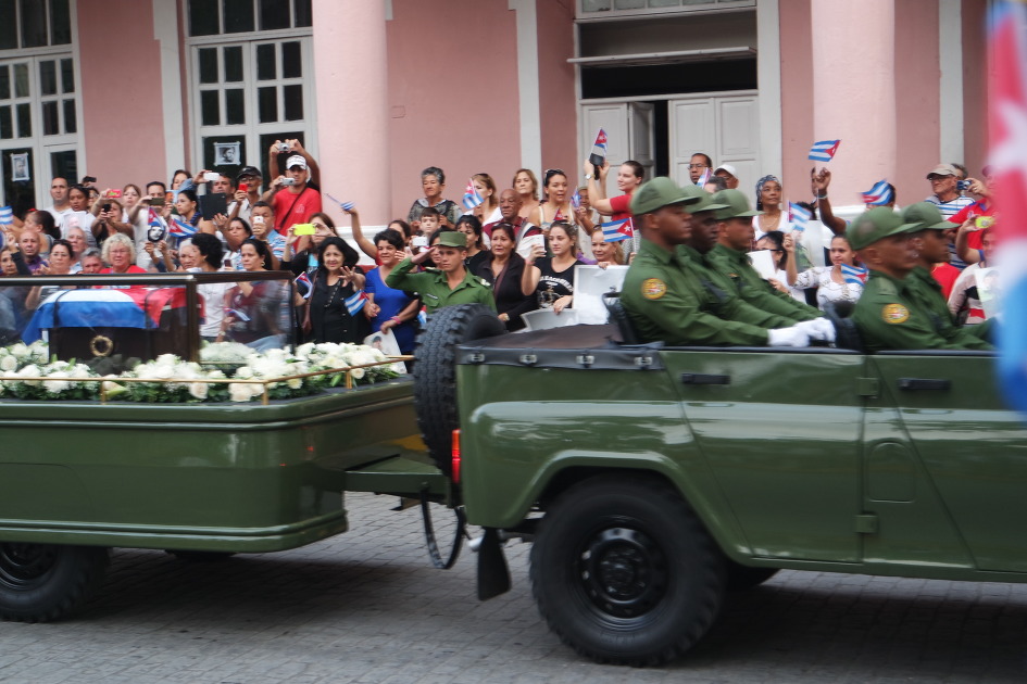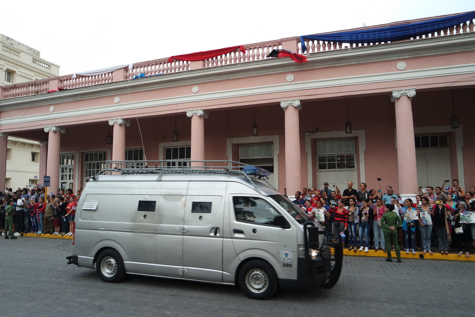 한 참을 더 기다려 나타난 카스트로의 영구차는 생각보다 검소하였다.