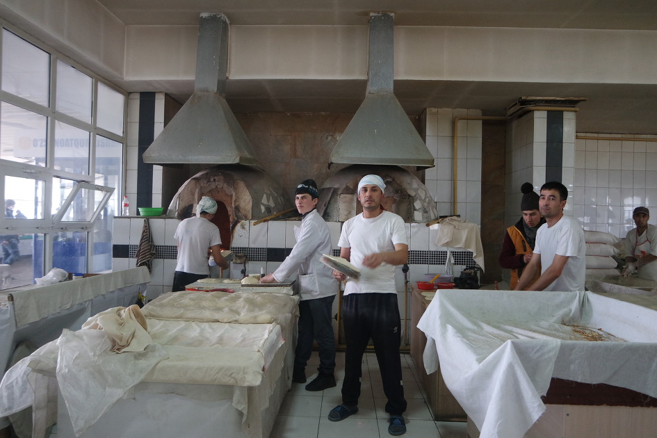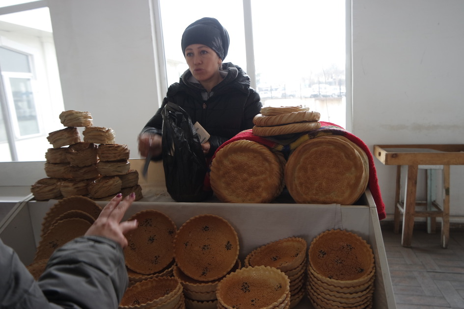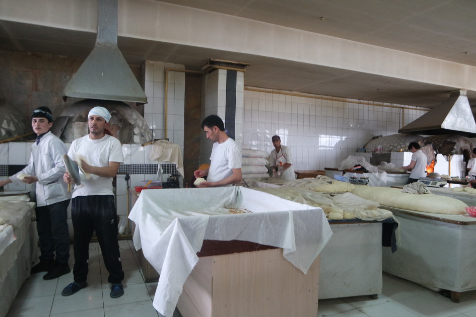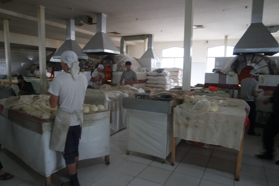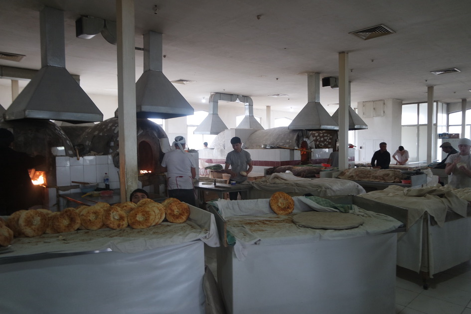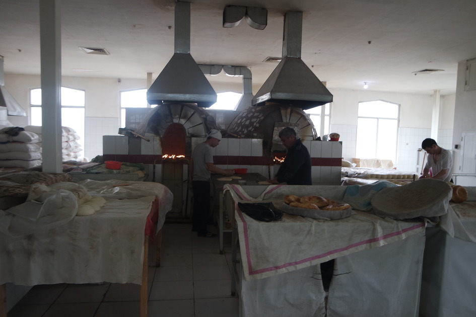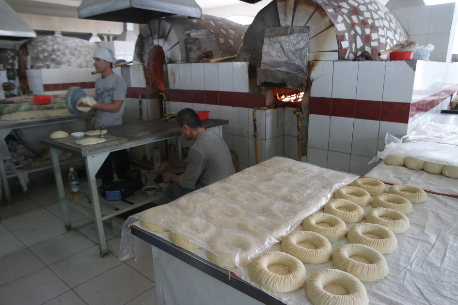 화덕에서 갓 구운 빵. 큰 빵 1개의 값은 1000숨(100원 정도)