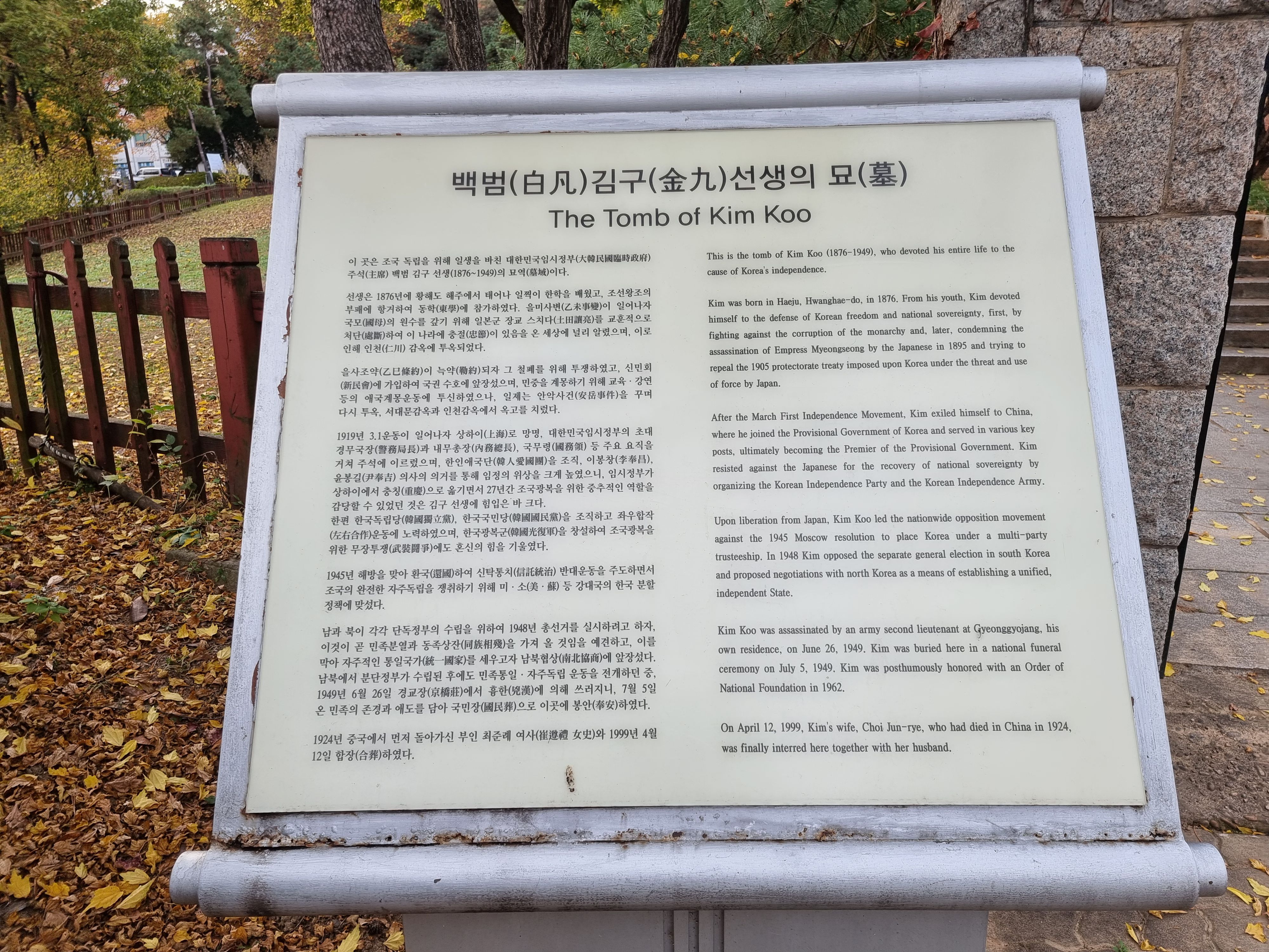 백범 김구 주석 묘소 입구