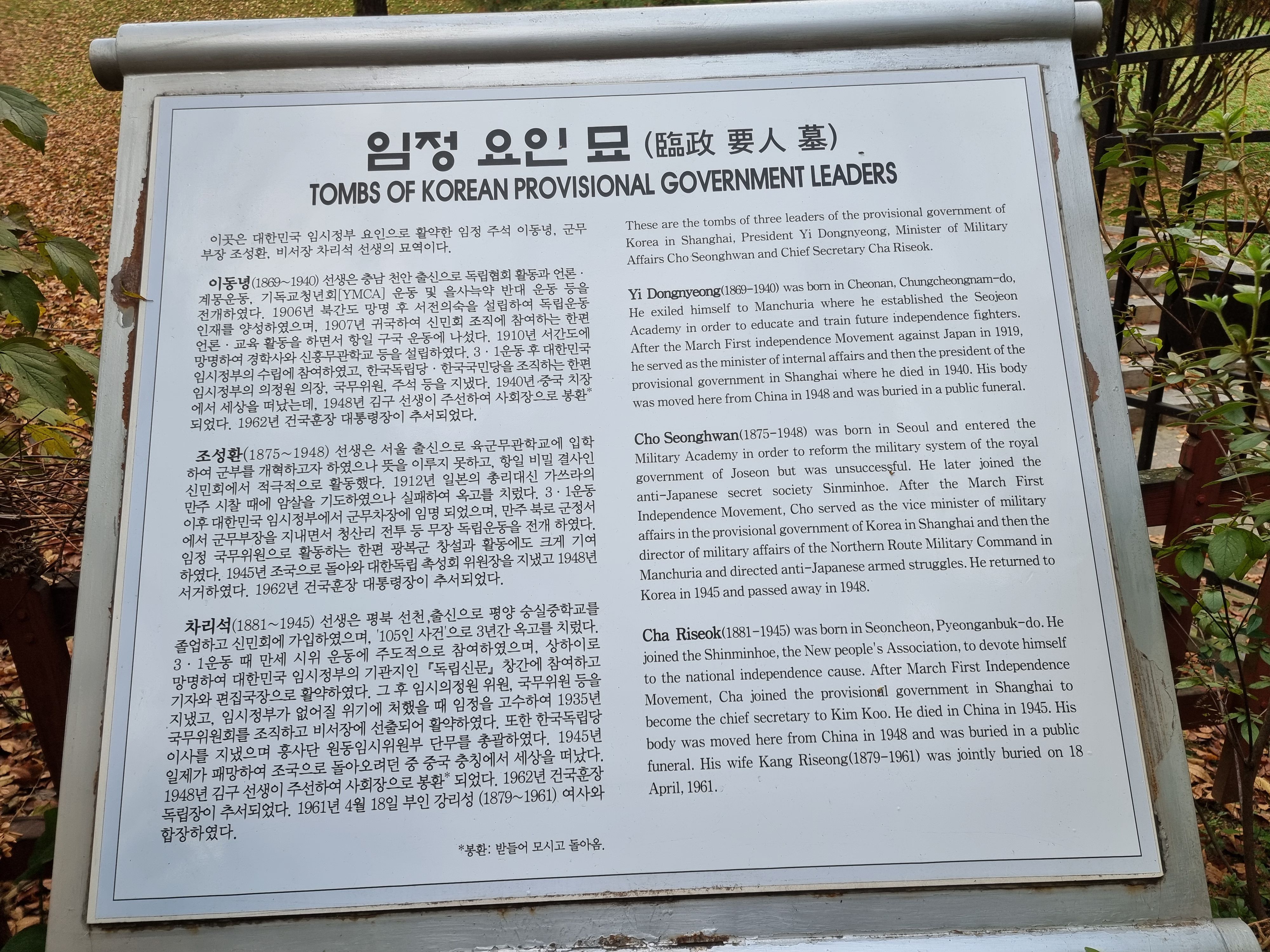 대한민국 임시정부 주석 이동녕 묘소