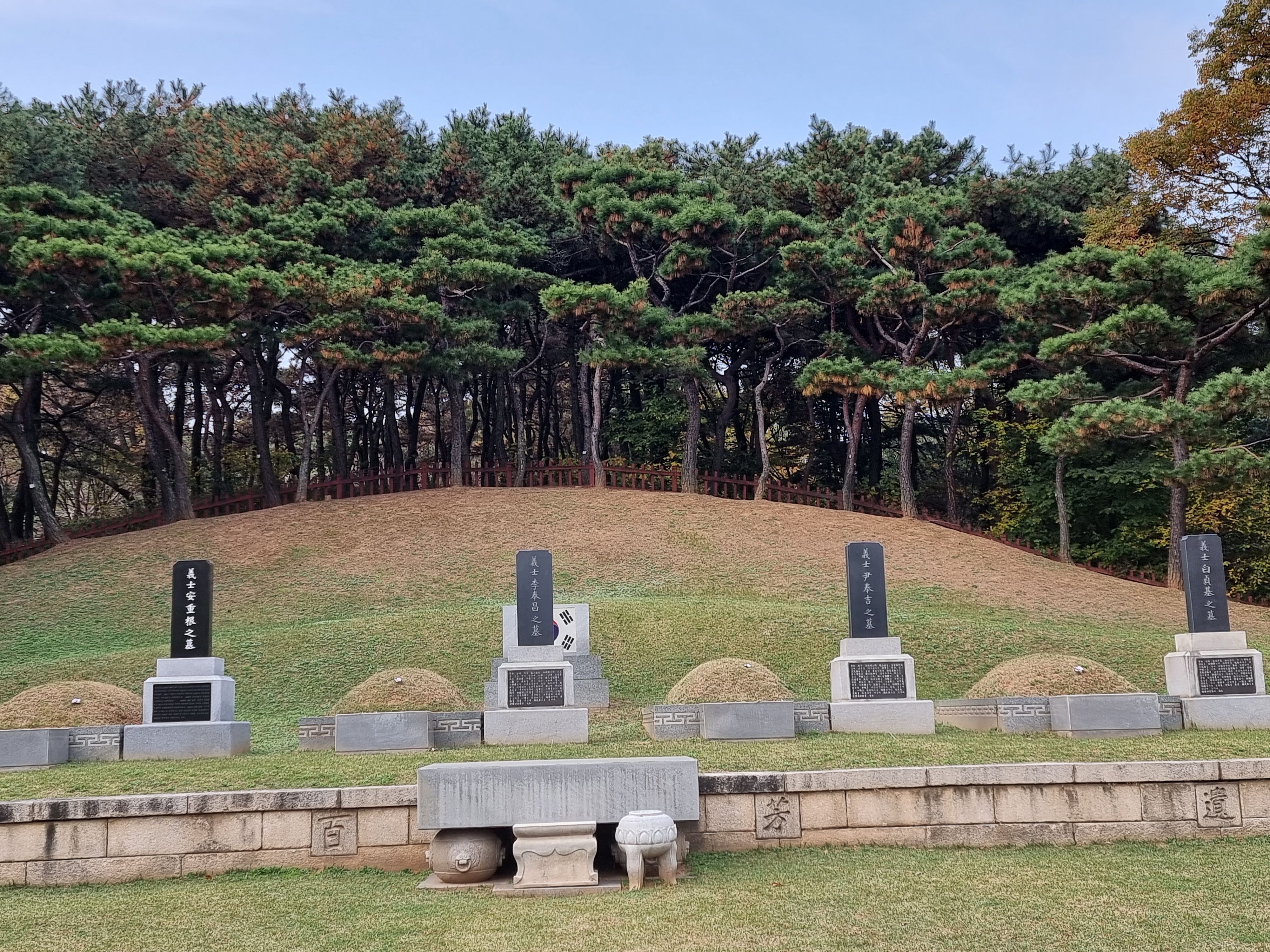 삼의사묘( 맨좌측은 안중근의사 가묘, 이봉창, 윤봉길, 백정기의사)