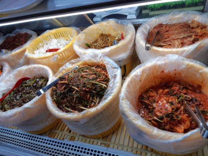 반찬통이 큰 양동이로 그득 그득 보기만해도 통큰 여주인에 성격을 닮아