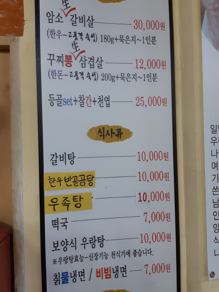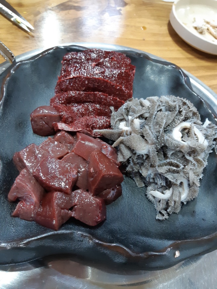 갈비탕집 써비스로 좀처럼 먹기도 보기도 힘든 간철엽이 한접시 야채 과일또한