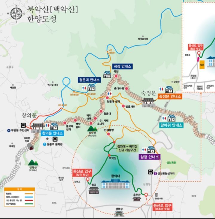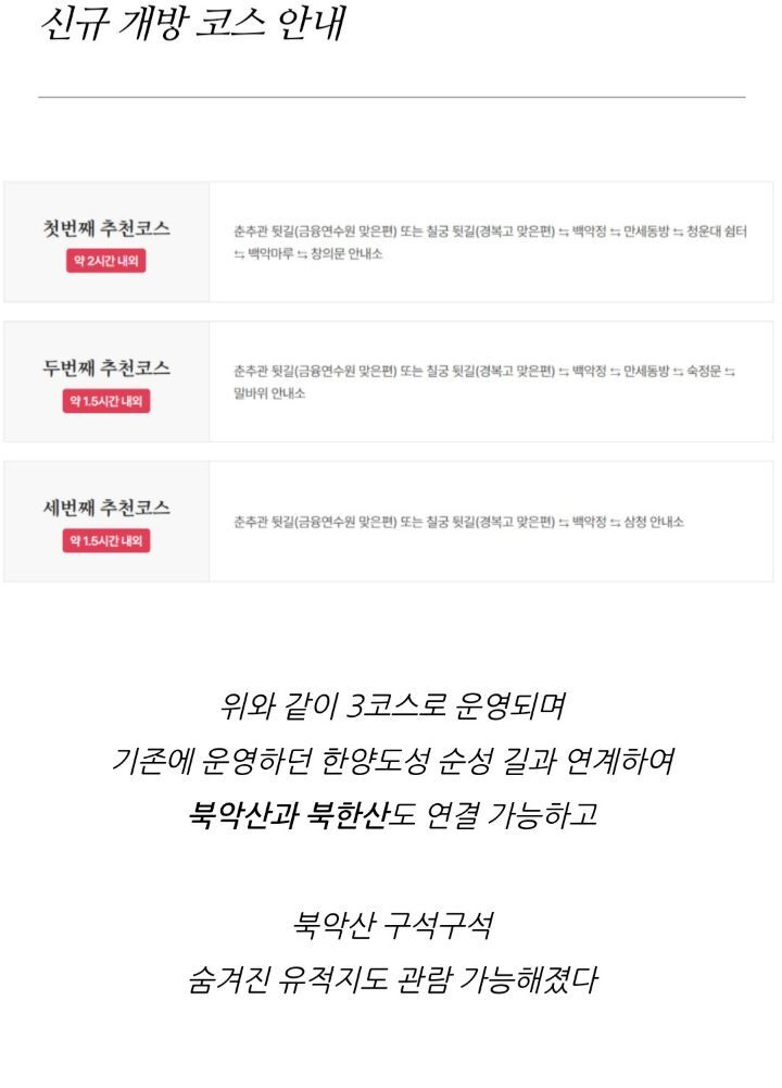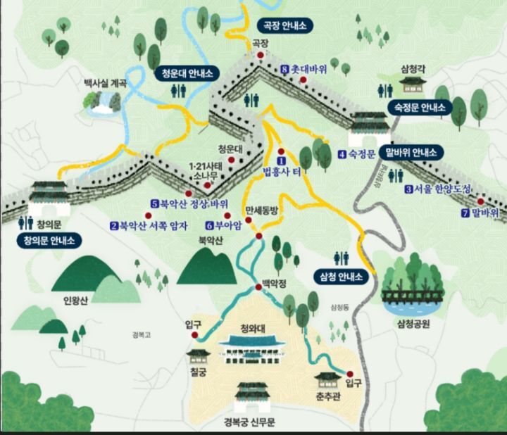 또한 춘추관 뒷길(금융연수원 맞은편)로 해서 백악정을 거쳐서 삼청안내소로 내려와도 됨