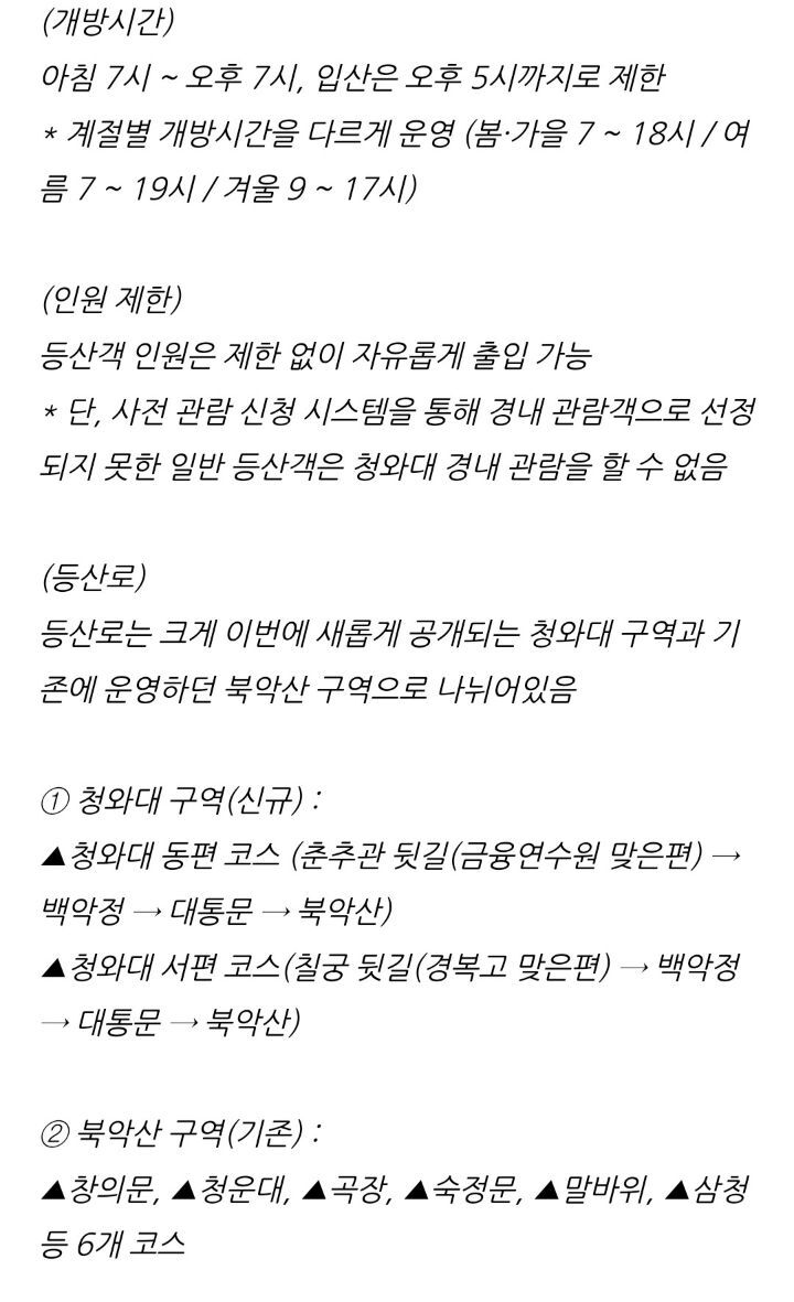 54년만에 개방된 청와대 뒷편 북악산 등산로를 쉽게 접근할려면 광화문역(5호선) 2번출구 KT사옥앞 정류소에서 마을버스 11번 탑승하여 삼청공원입구에서 하차함