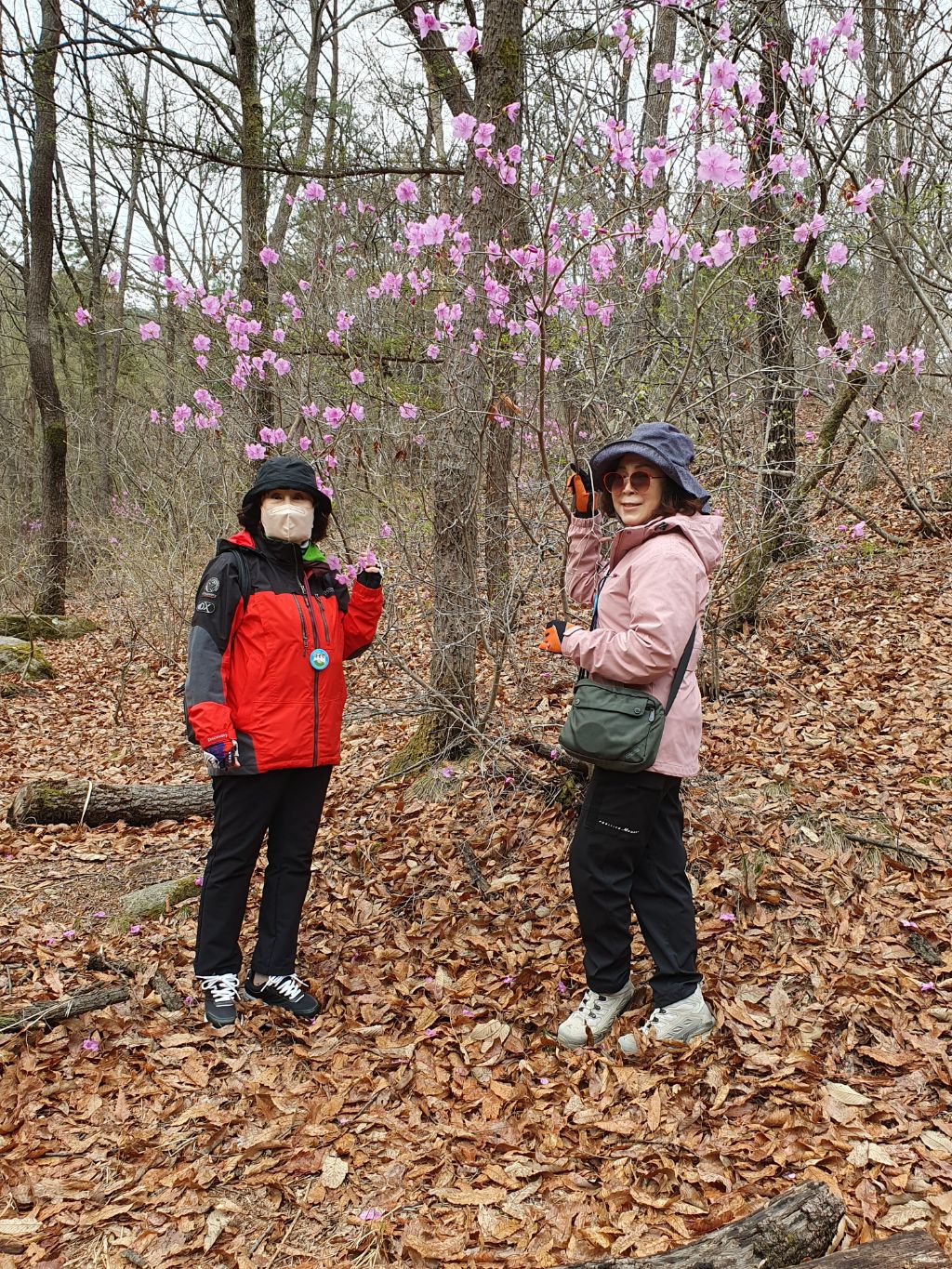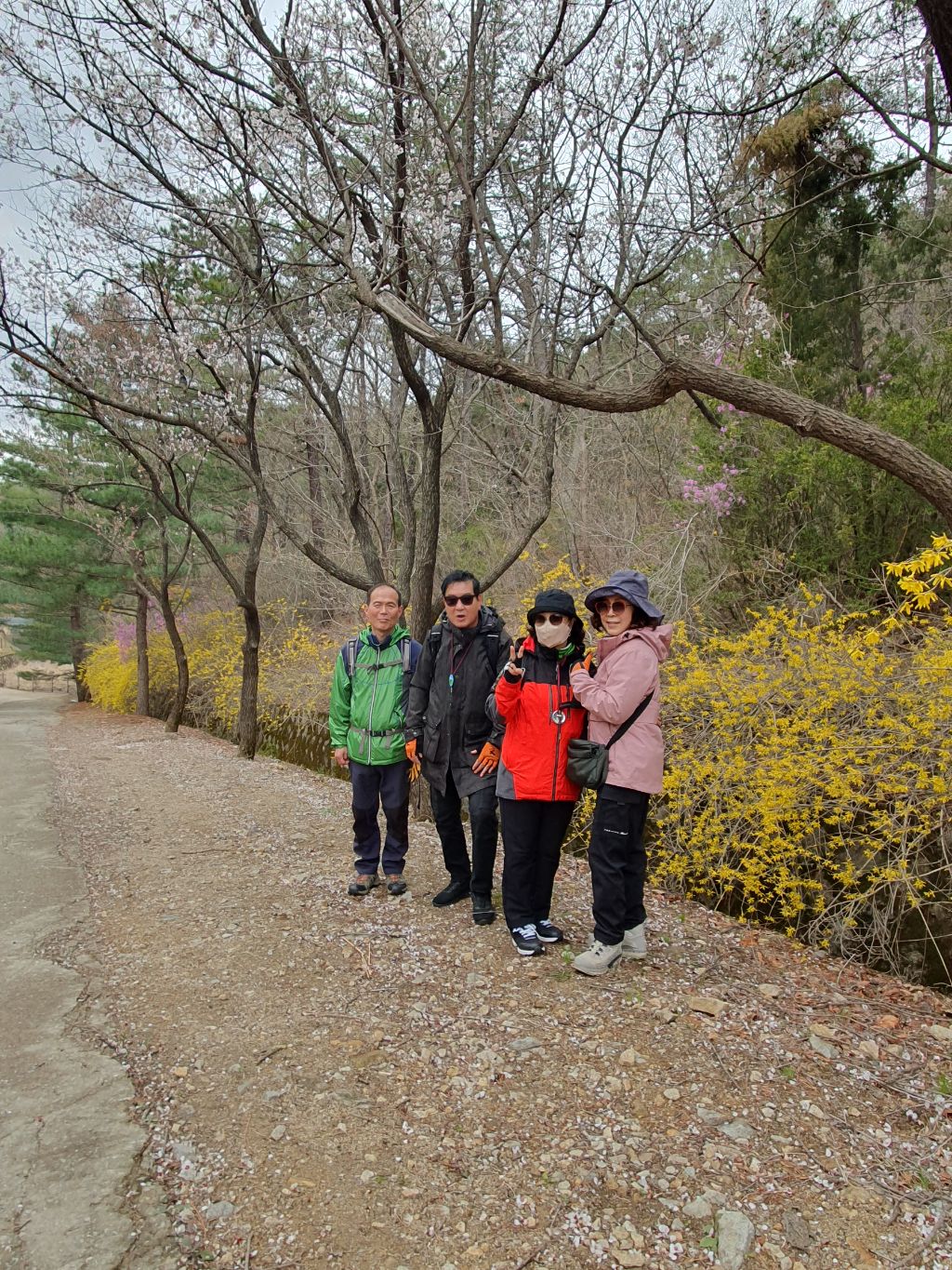 악천후의 산행이지만 개나리 진달래 어우러진 숲길을