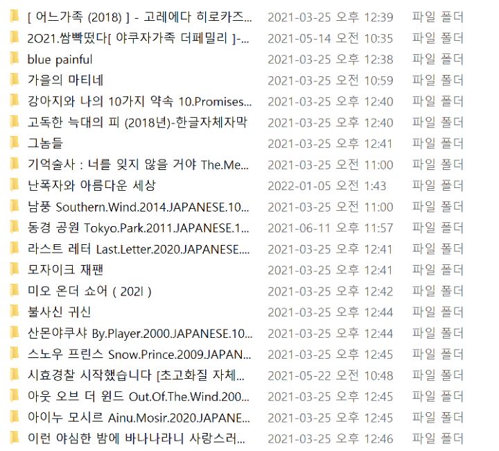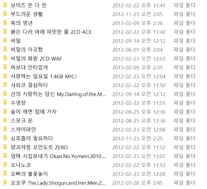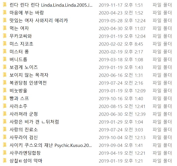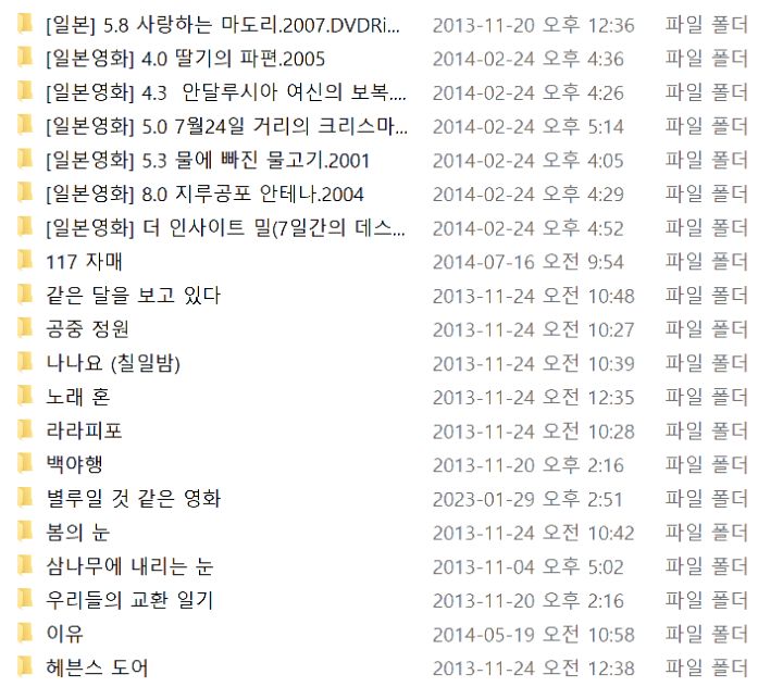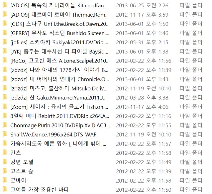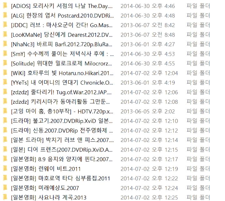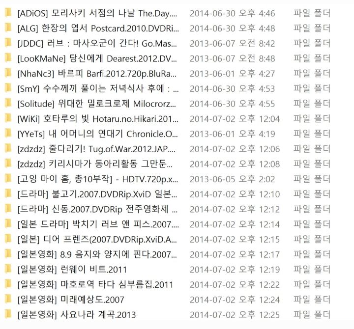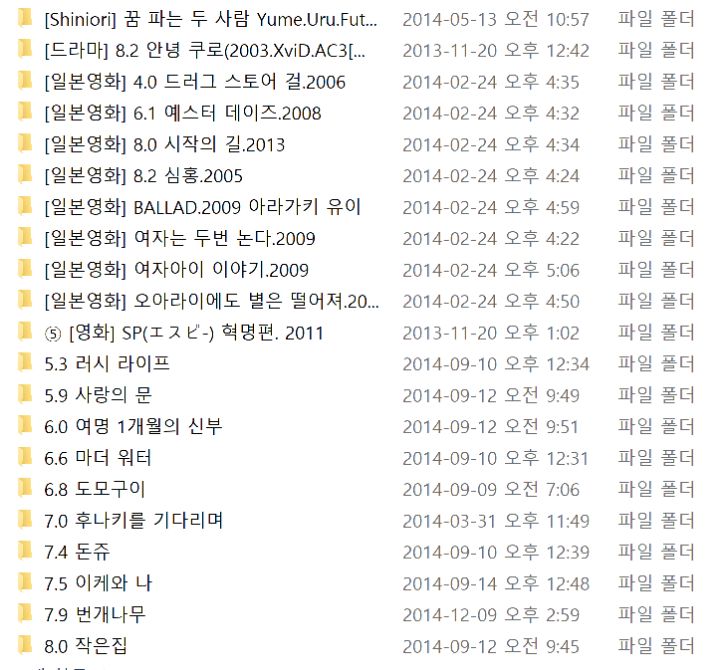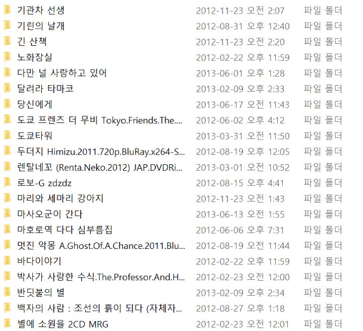 일본을 제외한 다른 나라들의 영화들은 몇 개만 남기고 거의 삭제했는데도 외장하드 8개다.