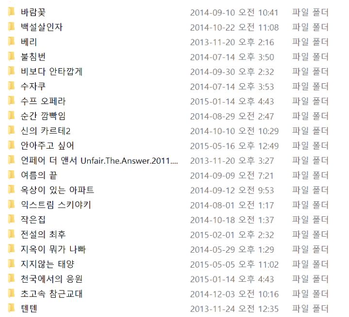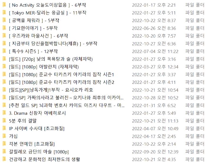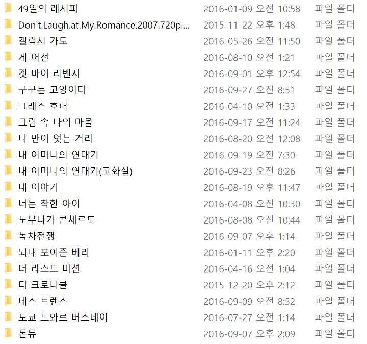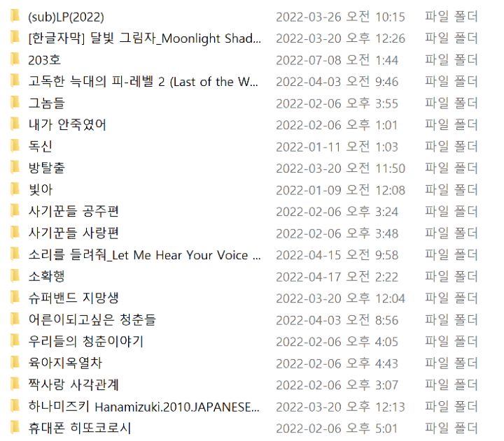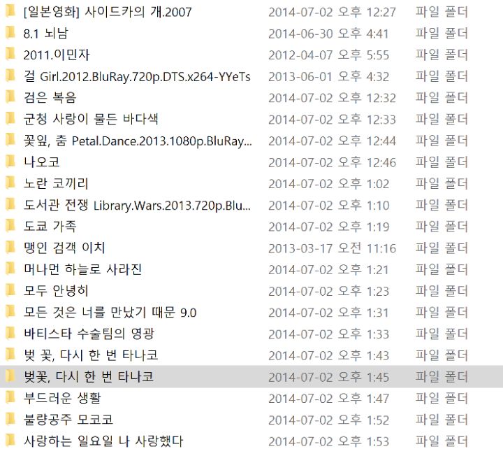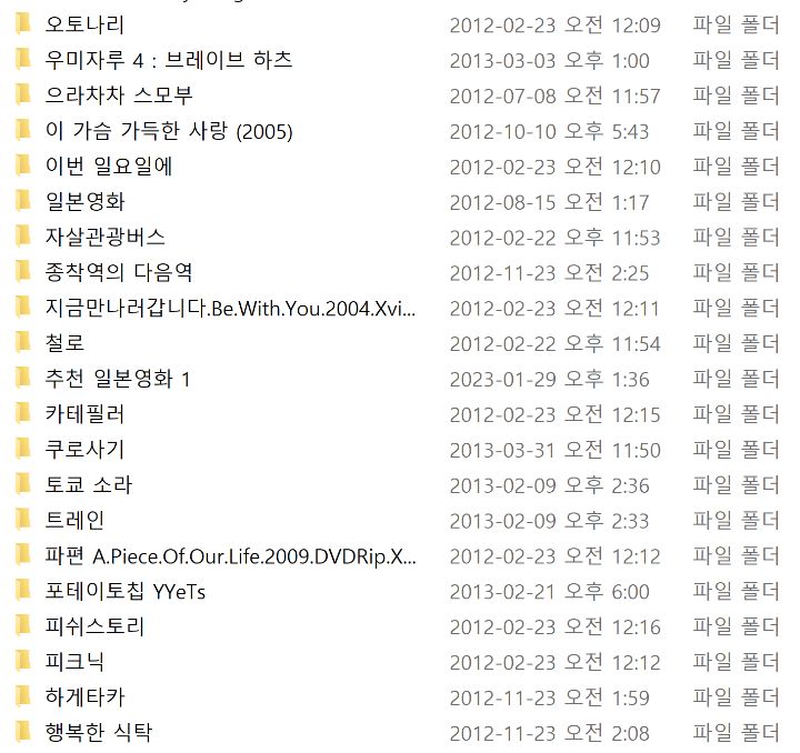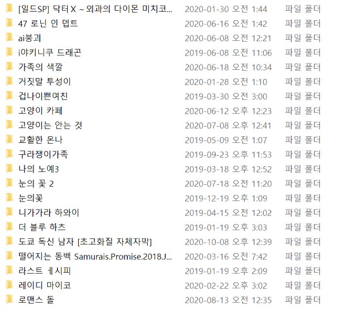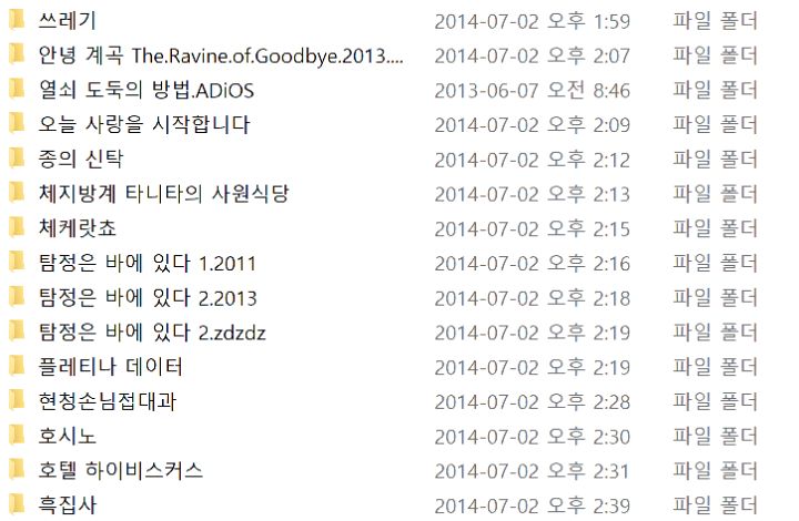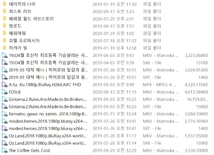 일본을 제외한 다른 나라들의 영화들은 몇 개만 남기고 거의 삭제했는데도 외장하드 8개다.