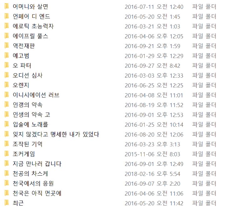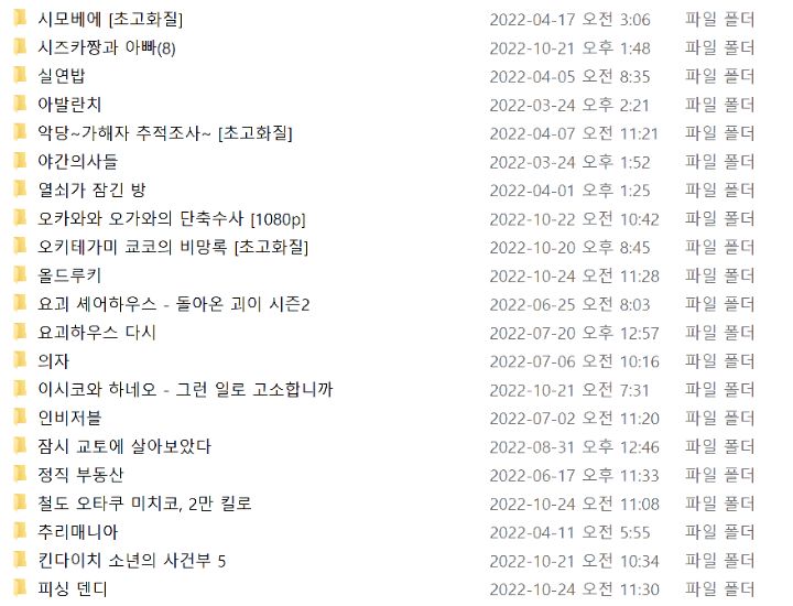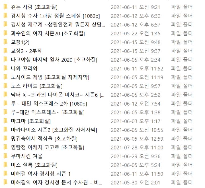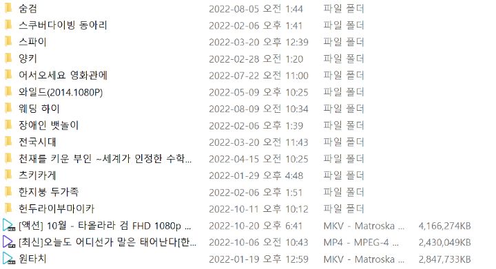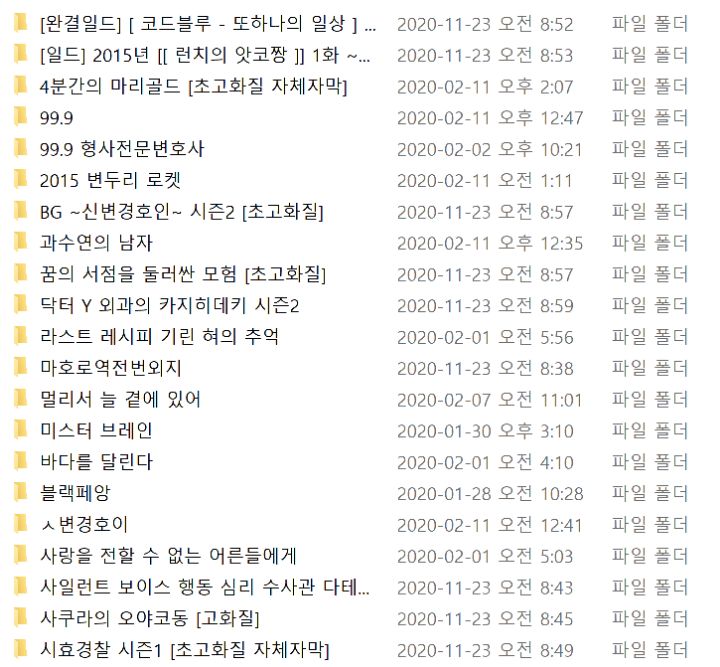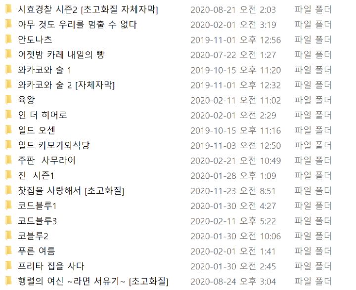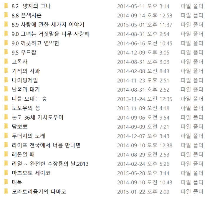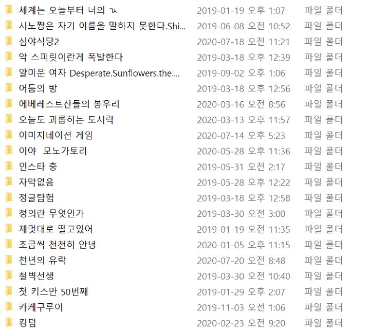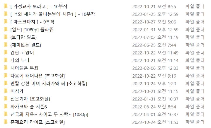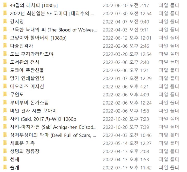 일본을 제외한 다른 나라들의 영화들은 몇 개만 남기고 거의 삭제했는데도 외장하드 8개다.