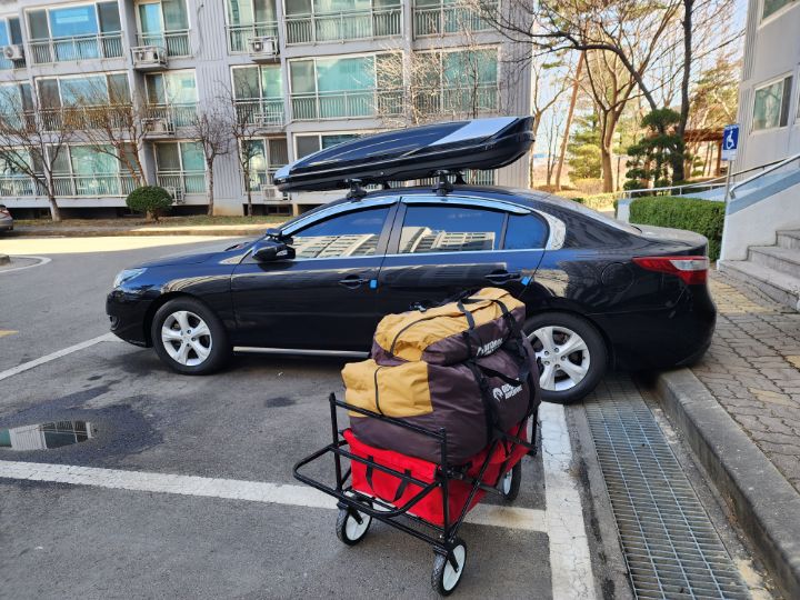 천안에 도착해서 랙 하나 더 설치하고 혼자 낑낑대며 크고 무거운 루프박스를 천장에 올리고 설치.