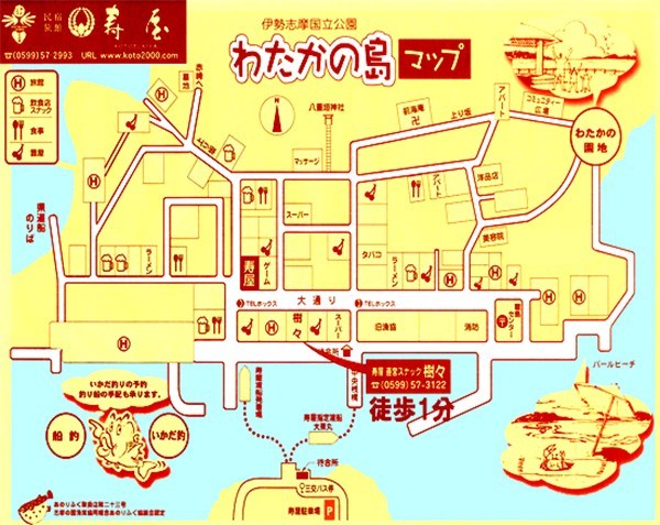 섬 인구 90%가 숙박 요식업 종사. 관광 전용 섬. 에도시대부터 뱃사람들이 파도를 피하기 위해 잠시 머무르던 섬으로 자연스럽게 포주들이 모여들었다고 한다 지금은 매춘전용 섬으로 빚에 팔려온 창녀들이 많다고함
