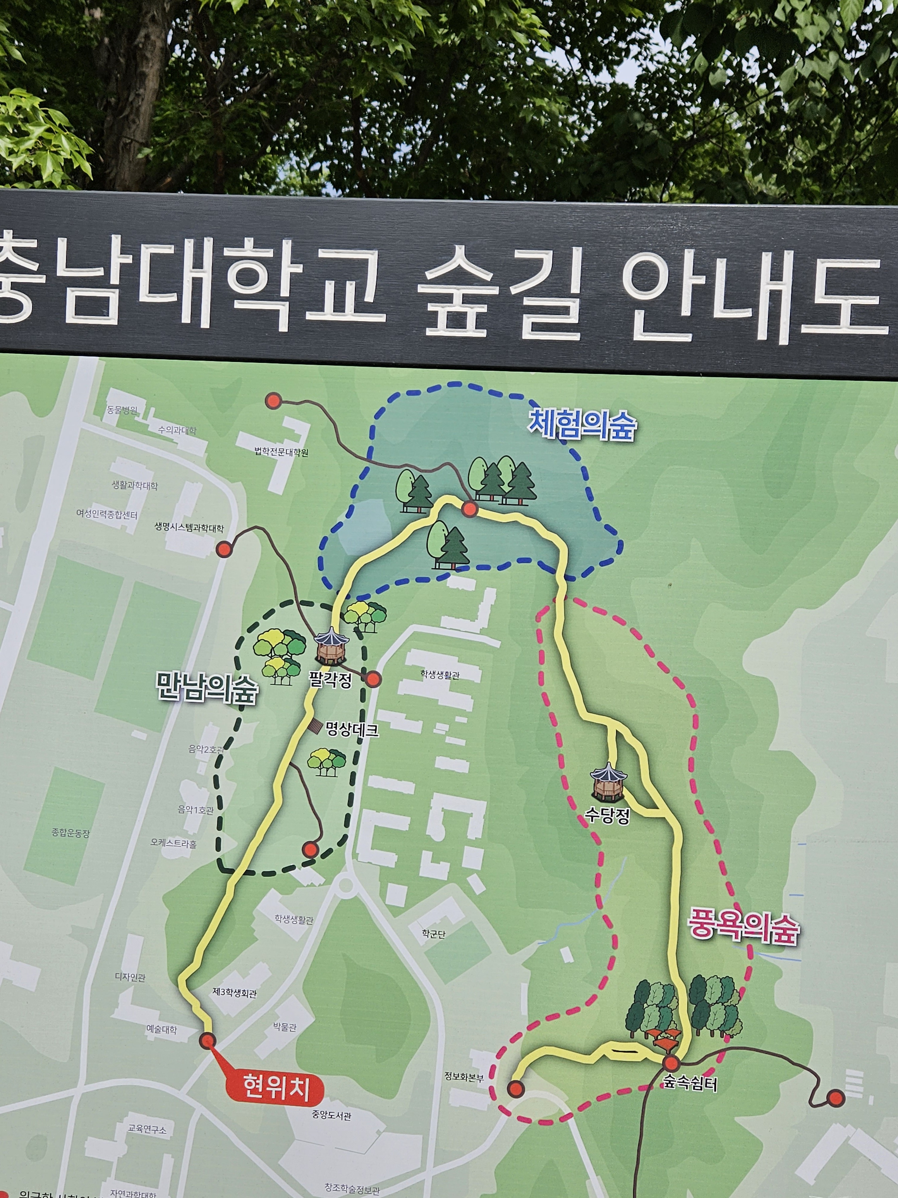 대전 충남대 , 숲길코스를 편도 2키로정도 만남의숲, 체험의숲, 풍욕의숲길을 대전지역님들 함께 했어요,