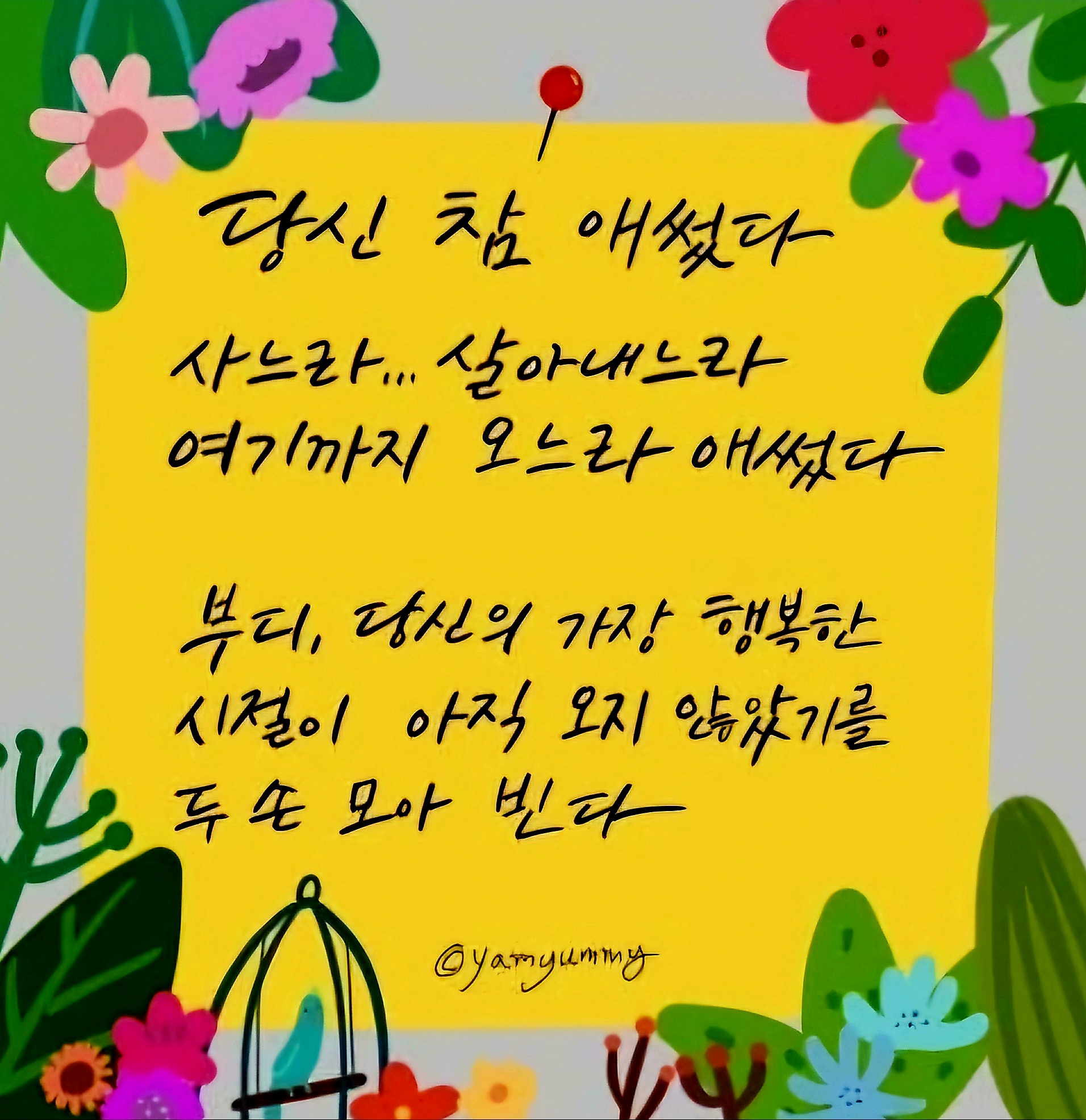 답댓글 작성자아라. 작성자 본인 여부 작성자 작성시간 26.01.06 이만큼 살다보니..