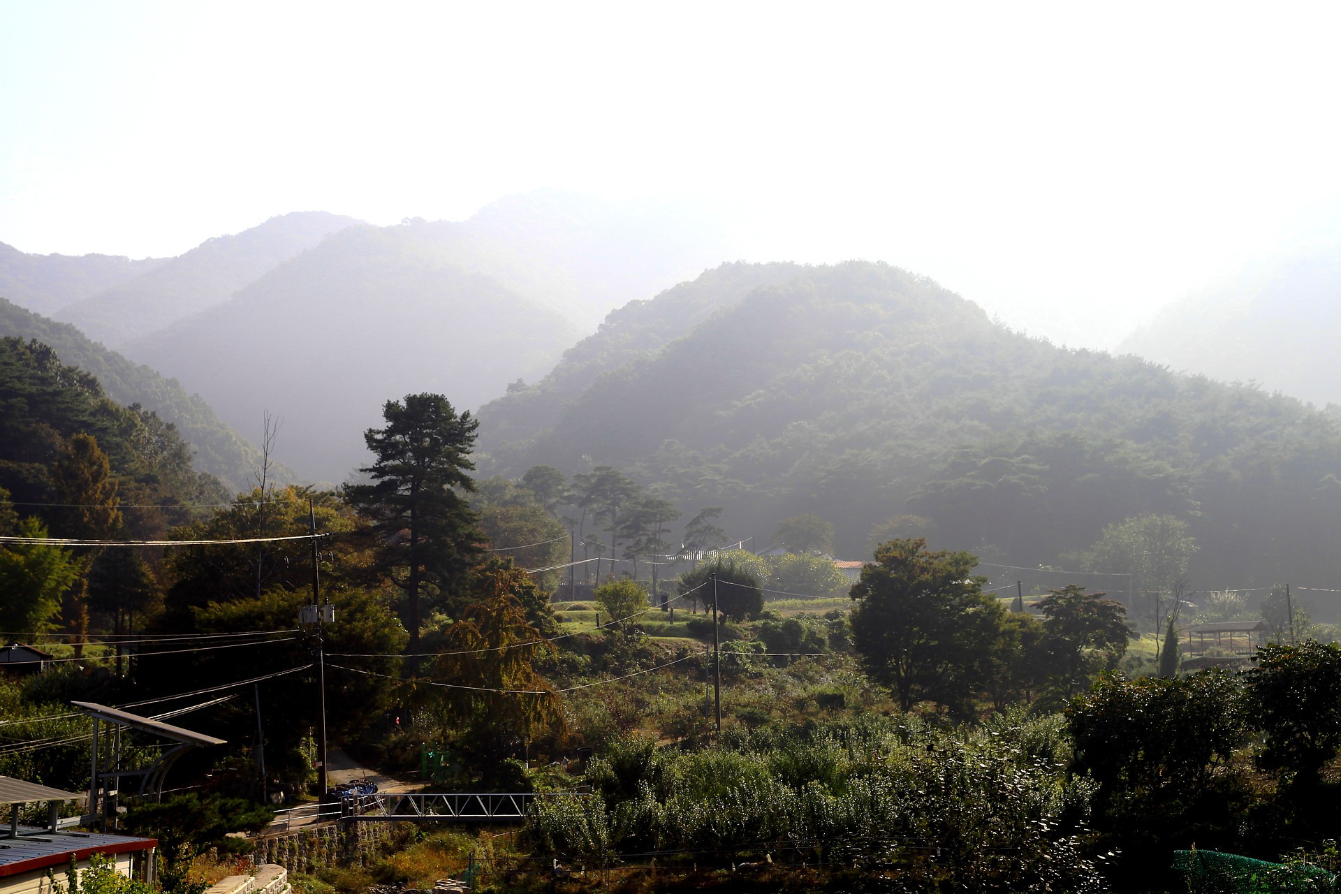 작성자비온뒤 작성시간 24.10.17 산허리를 두른 안개가 신비함을 연출한 산자락,