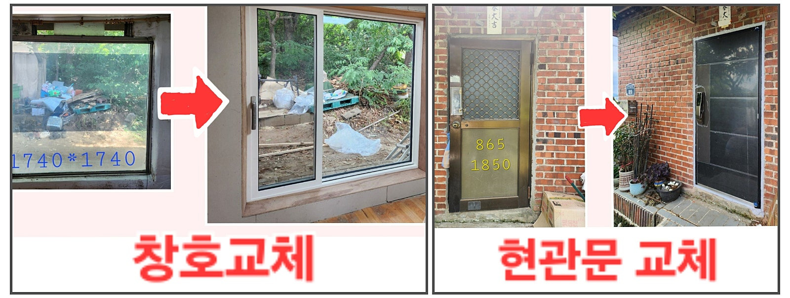 오래된 현관문, 창문 교체작업