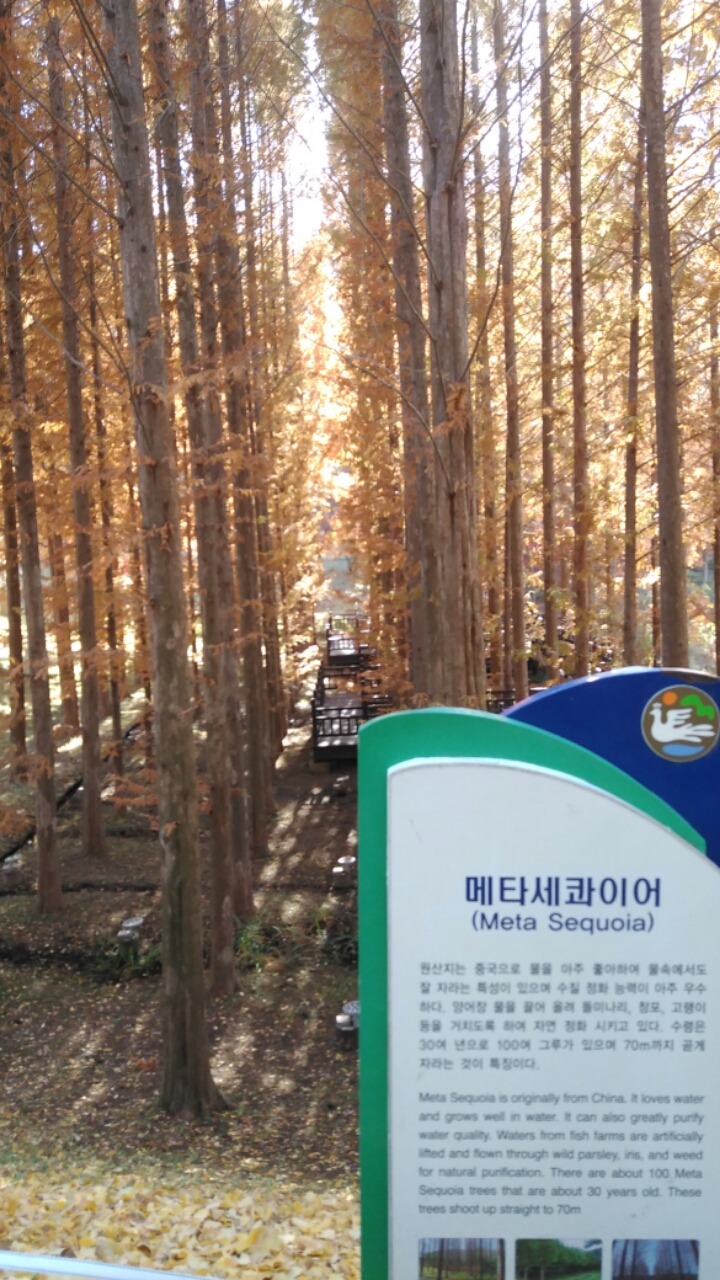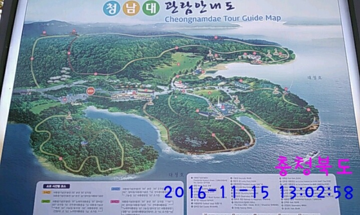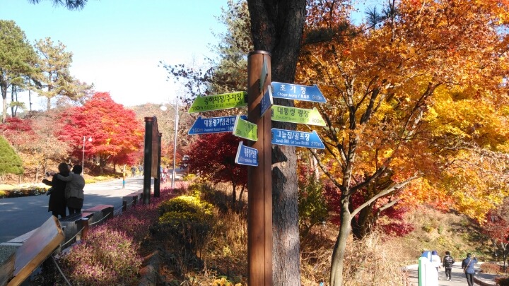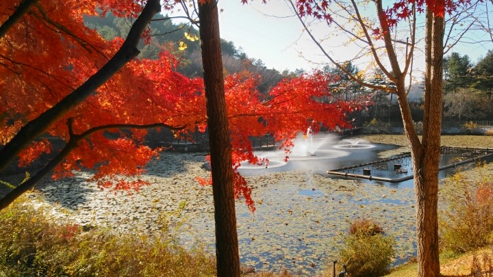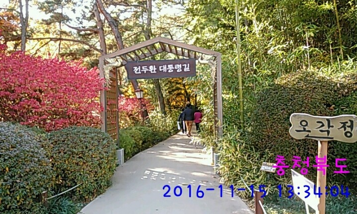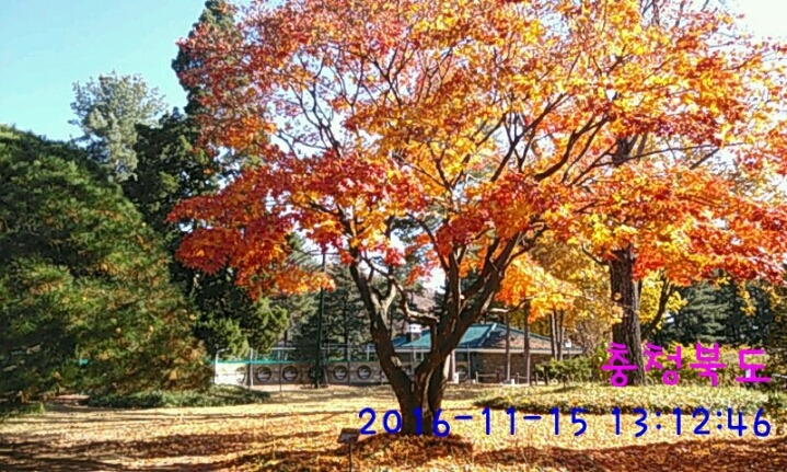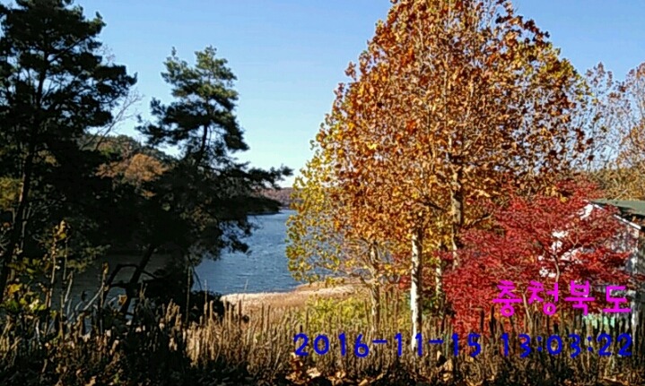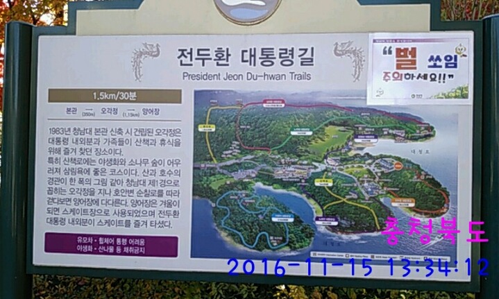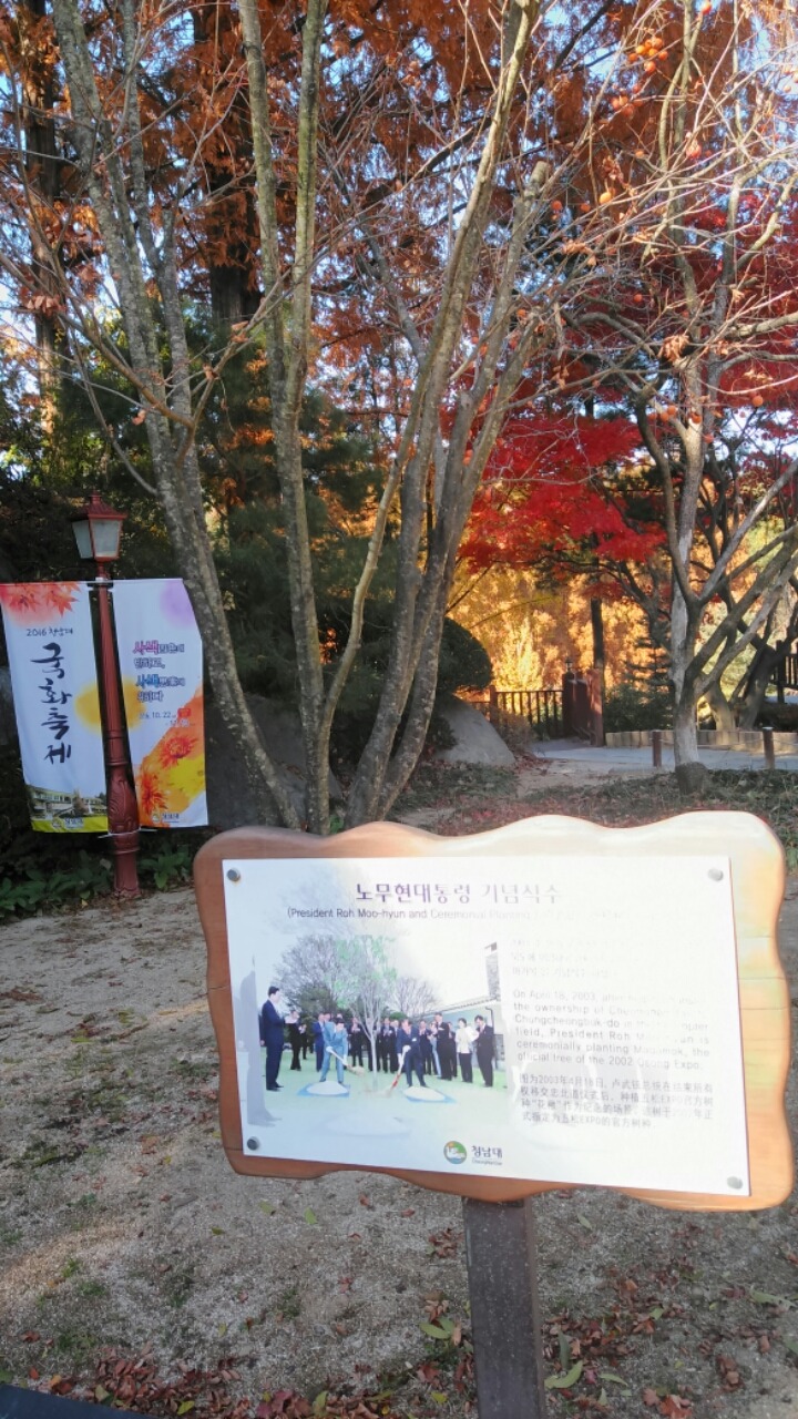 I'm enjoying the autumnal beauty of the 청남대 called the villa of president in the Dae Chong lakeside.