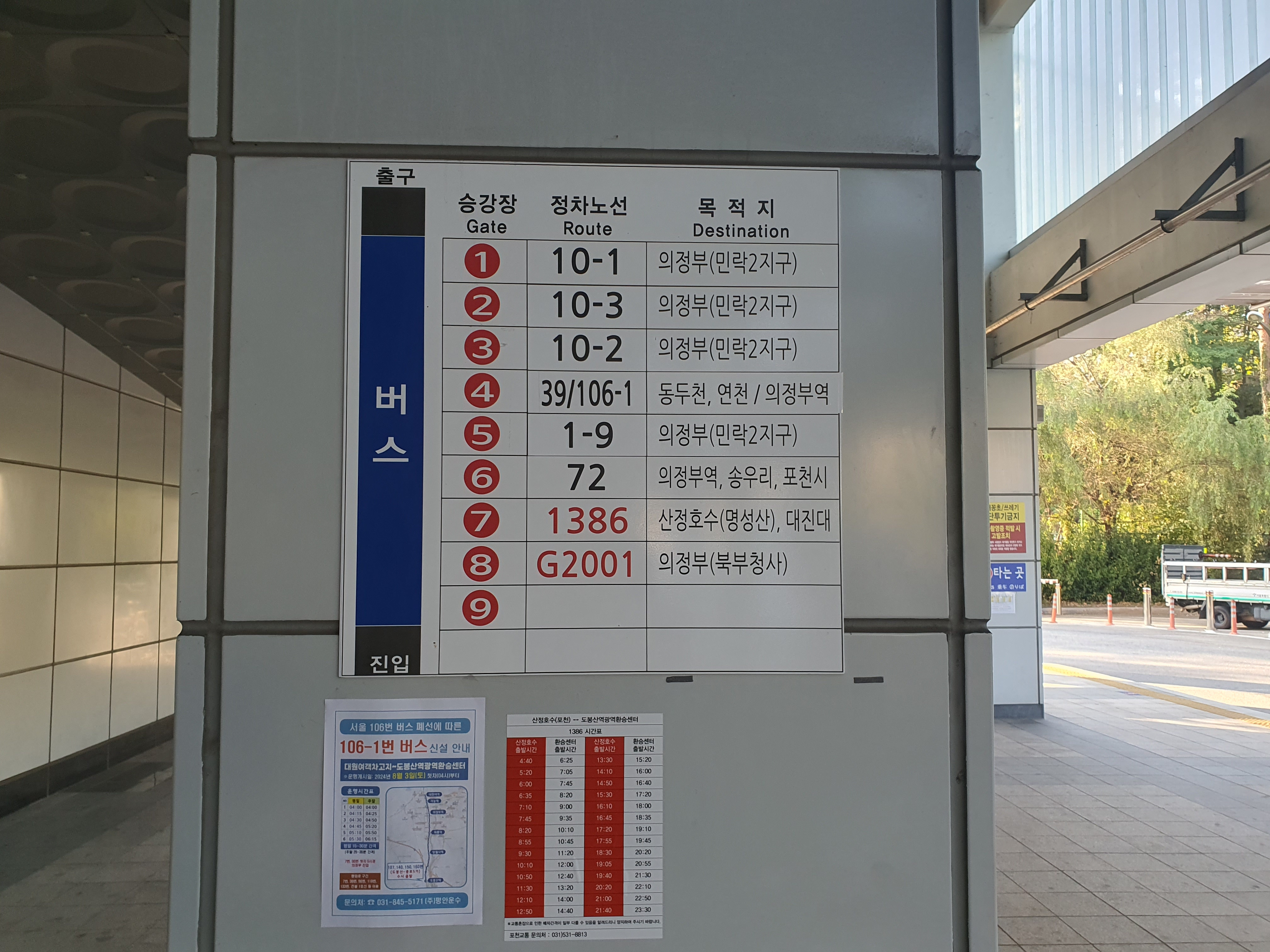 밖으로나가면 1386번 좌석 버스 줄서기 하면됩니다.