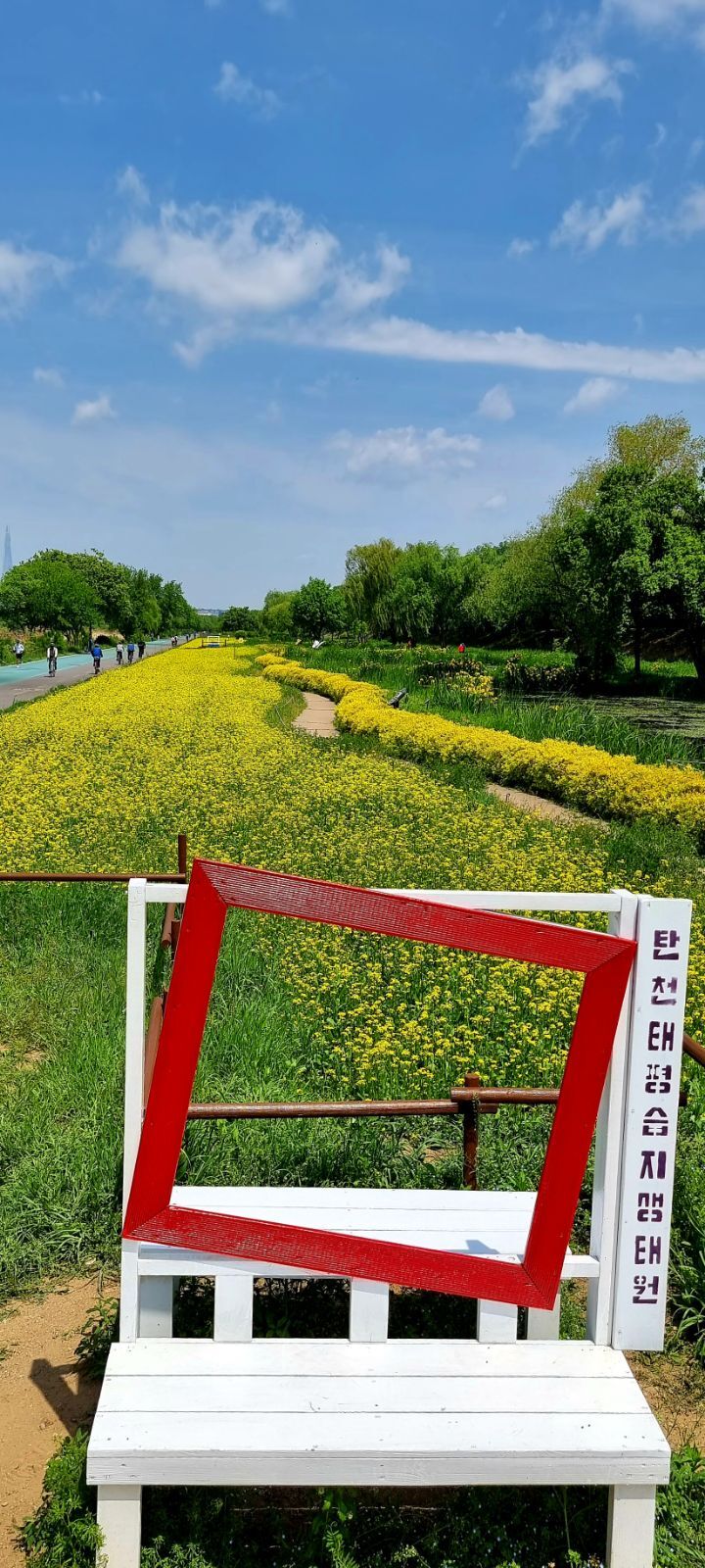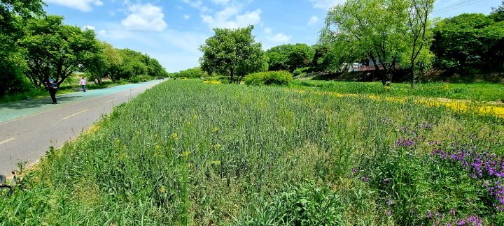 탄천 유채밭이 5/7 정오 현재 100% 만개하였습니다.
