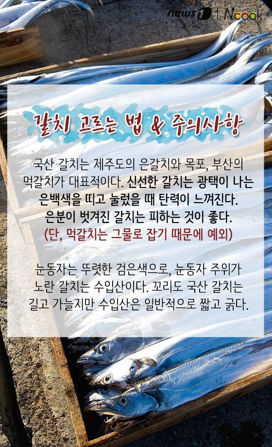 갈치는 골다공증 예방, 두뇌발달, 소화촉진, 성인병예방등의 효능이 있으며