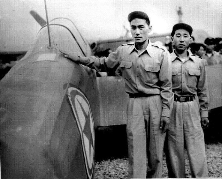 🔺️1955년 6월 21일 야크18 연습기를 타고 귀순한 북한 공군장교 이운용과 이인선.