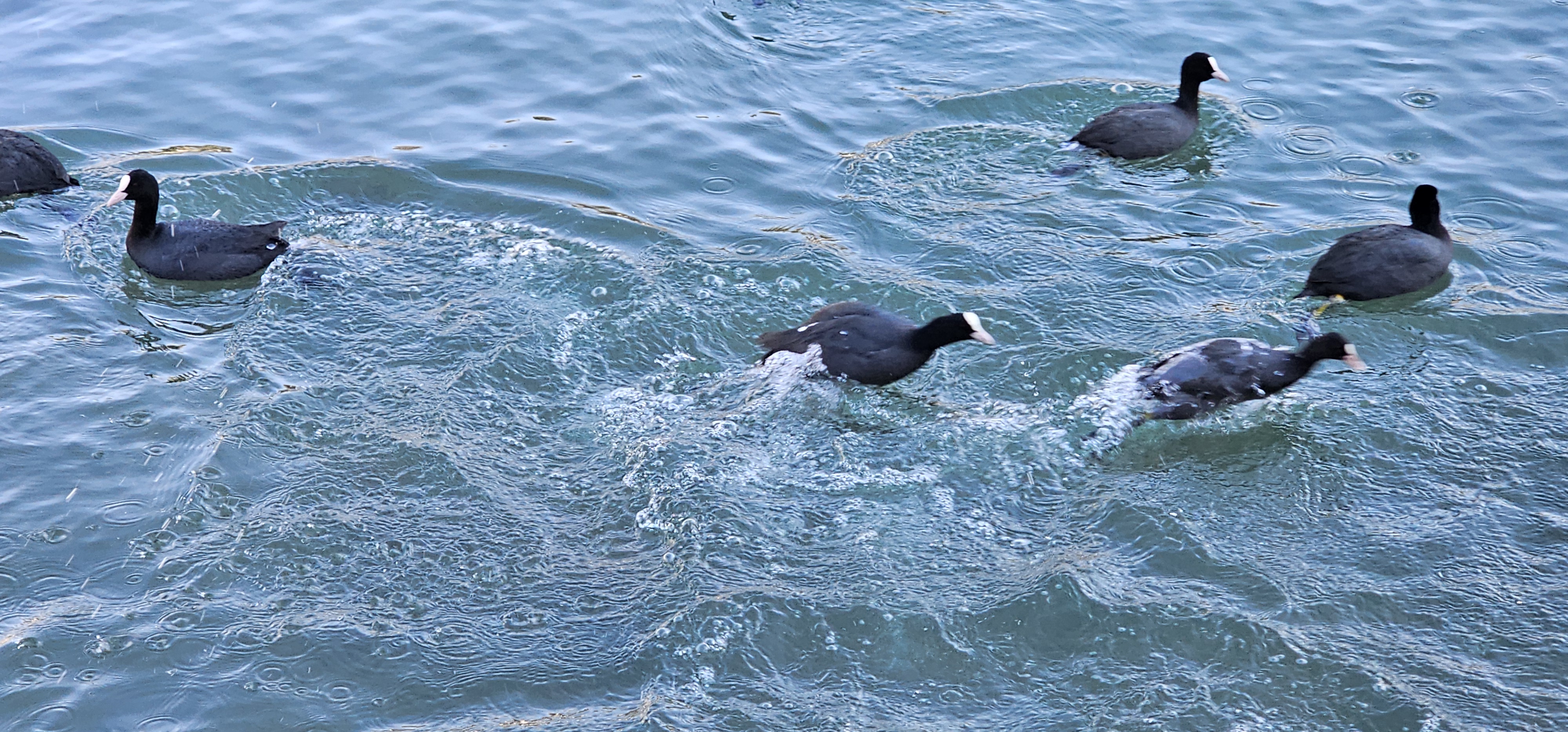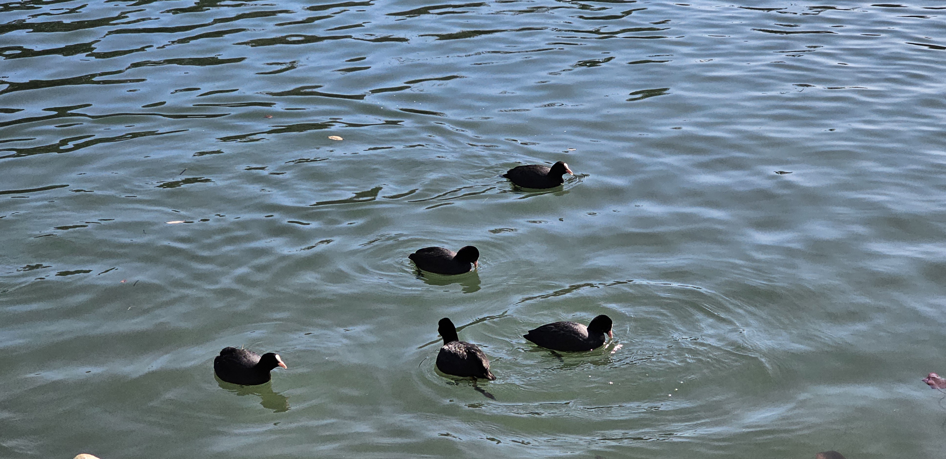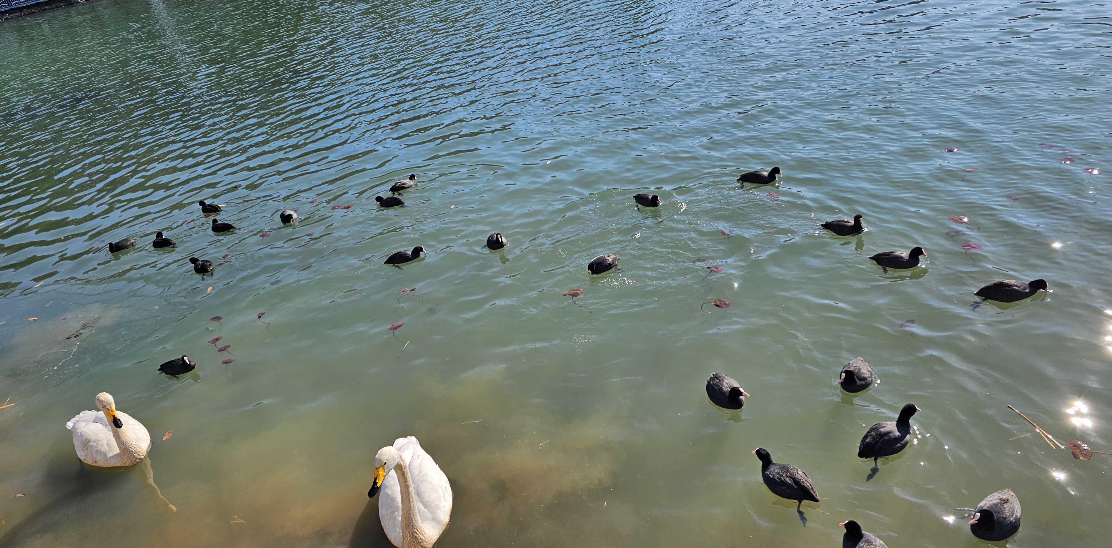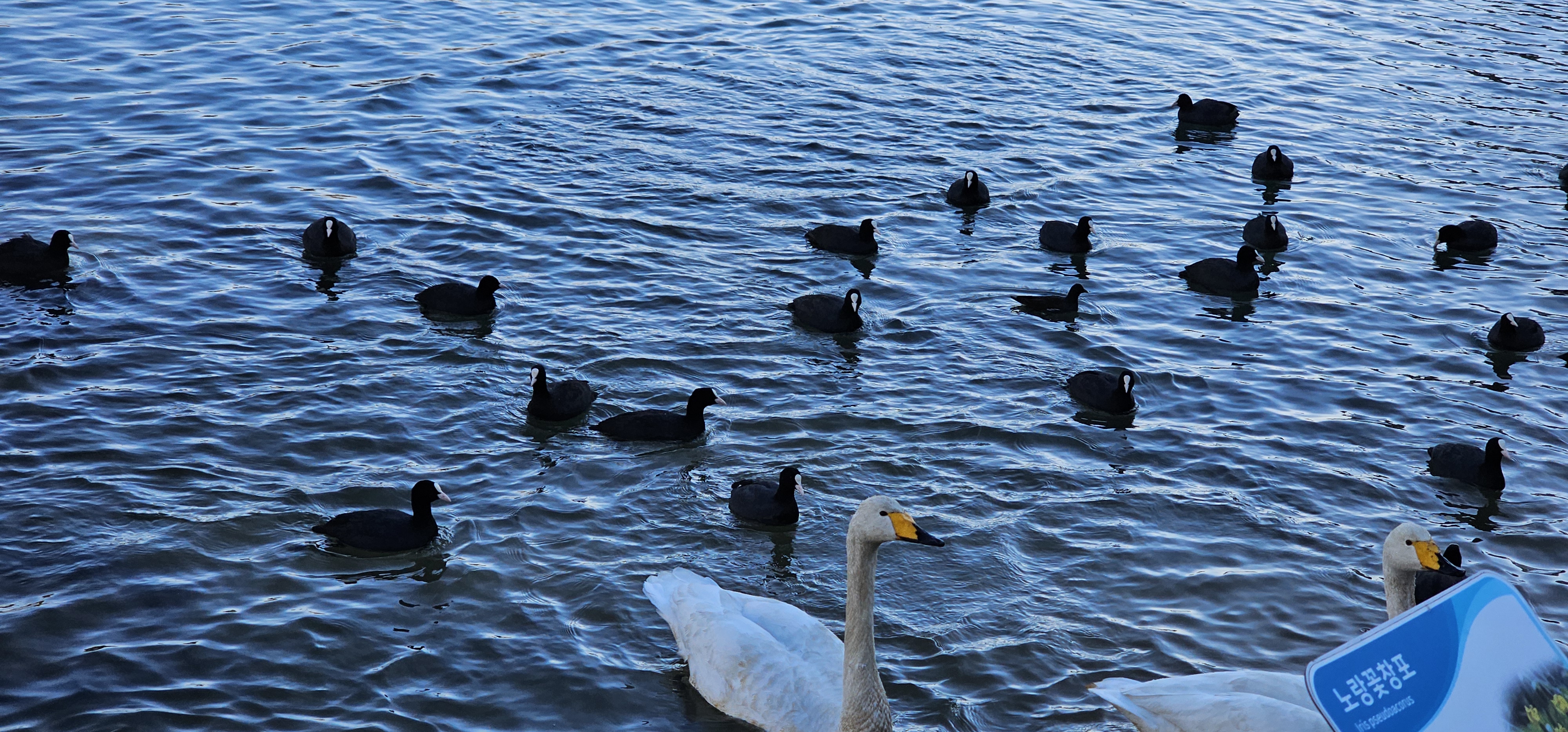 쟤들은 털에 기름이 많아서 절대로 털이 물에 젖지