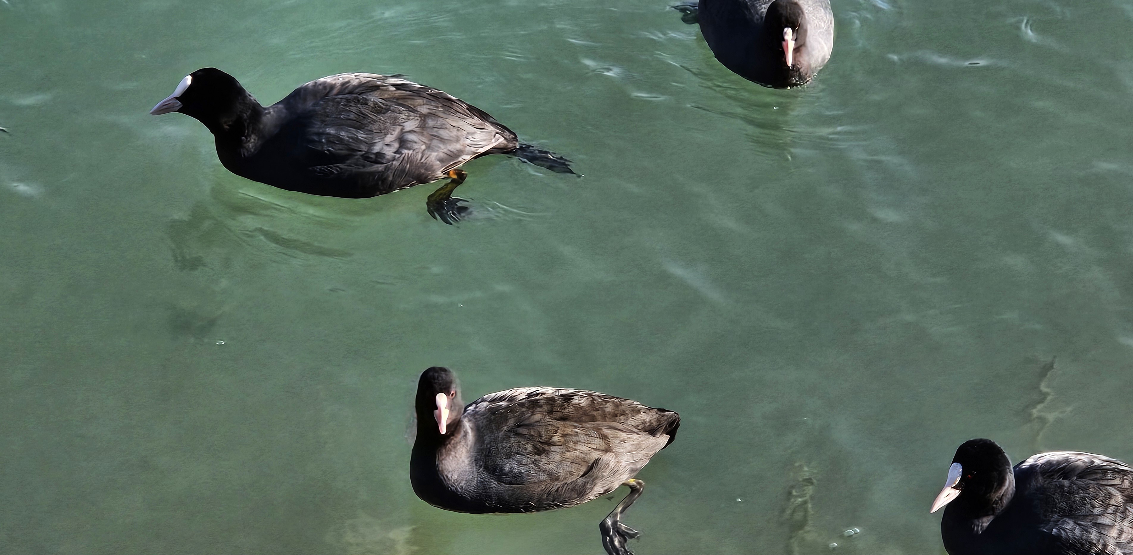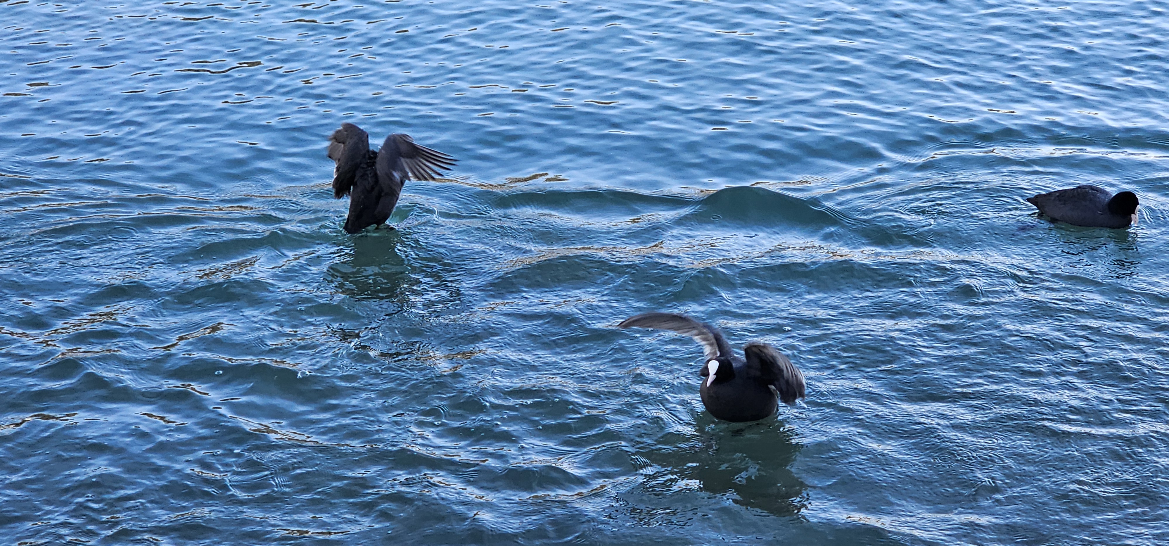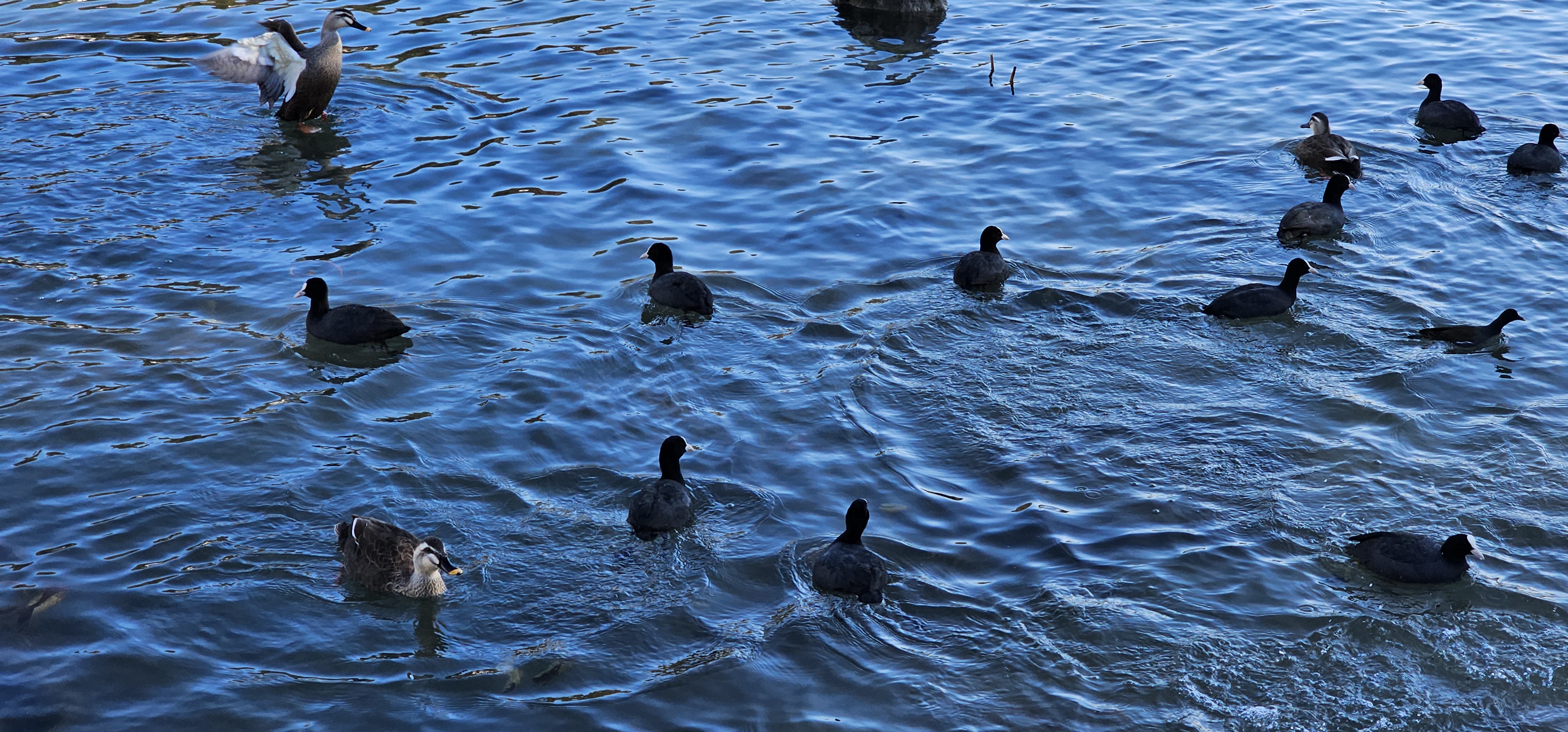 쟤들은 털에 기름이 많아서 절대로 털이 물에 젖지