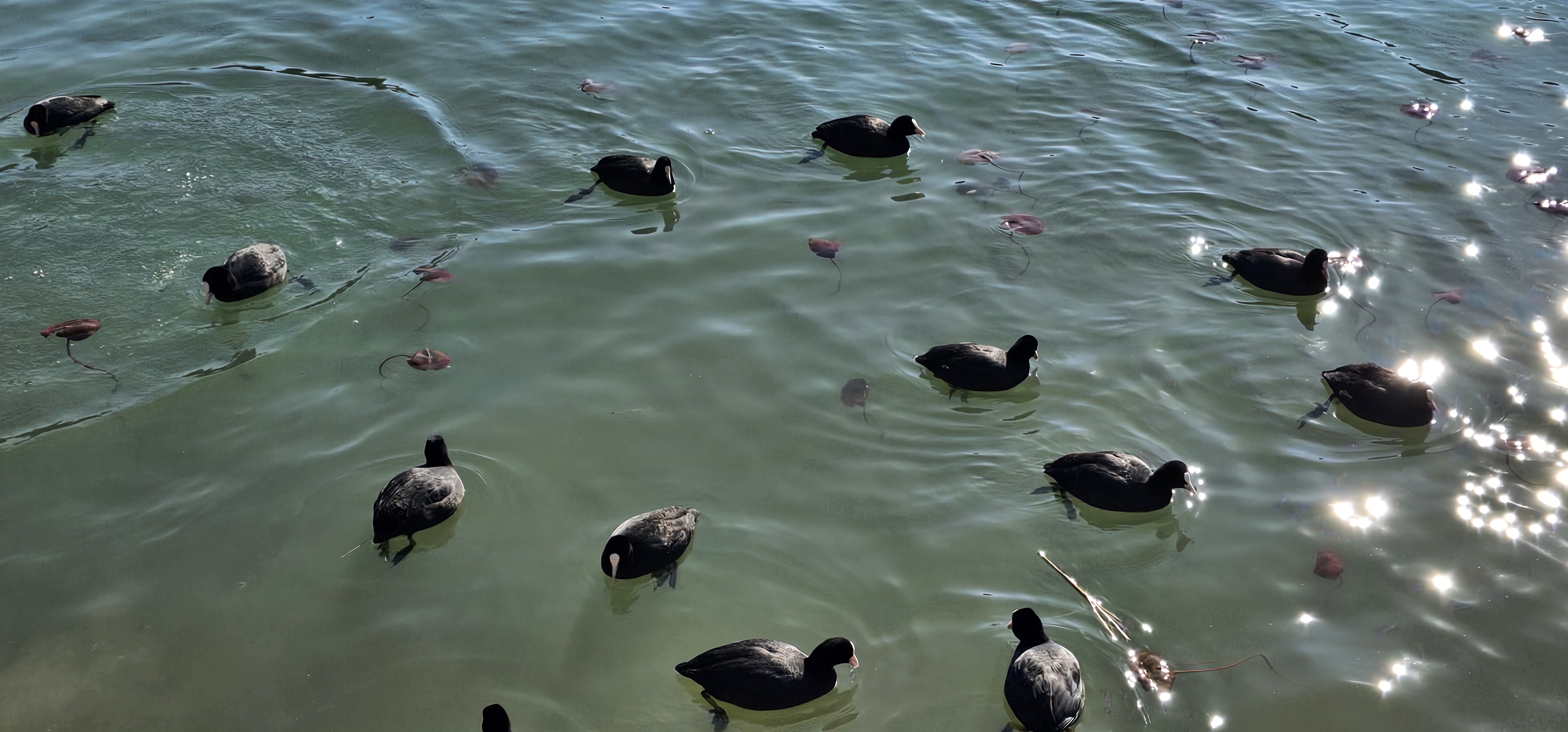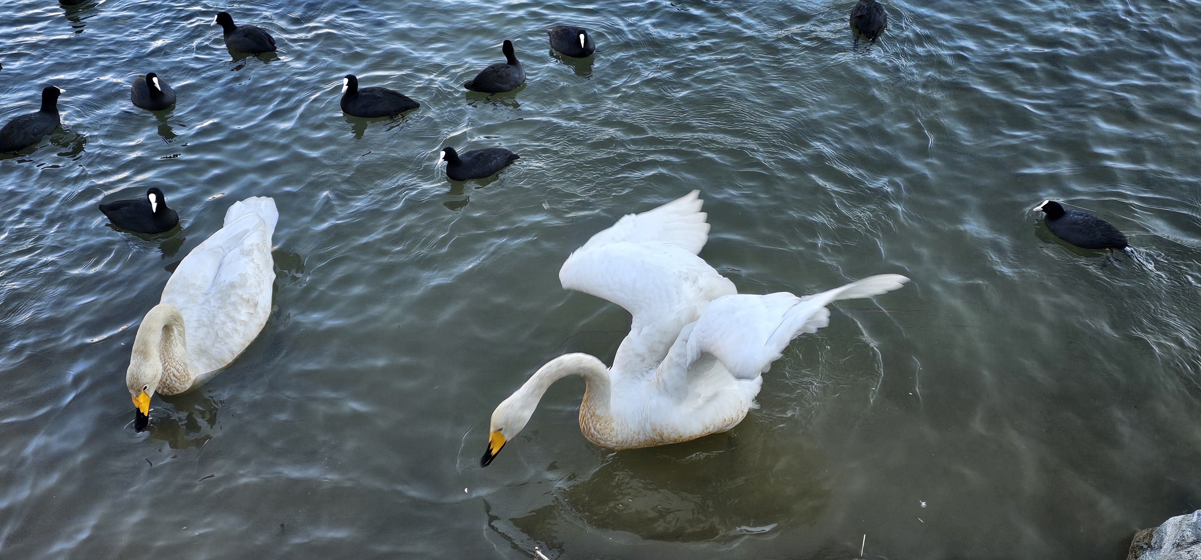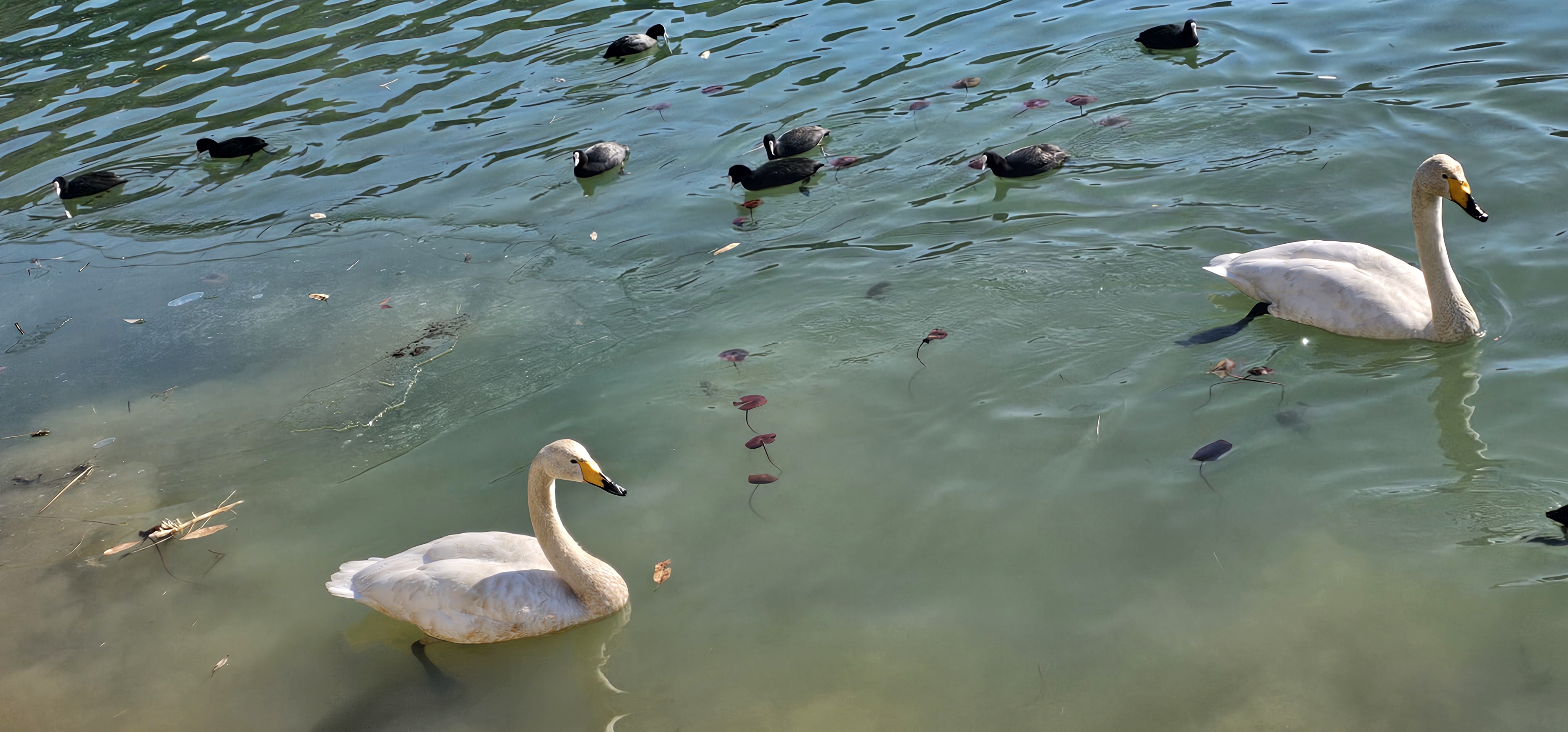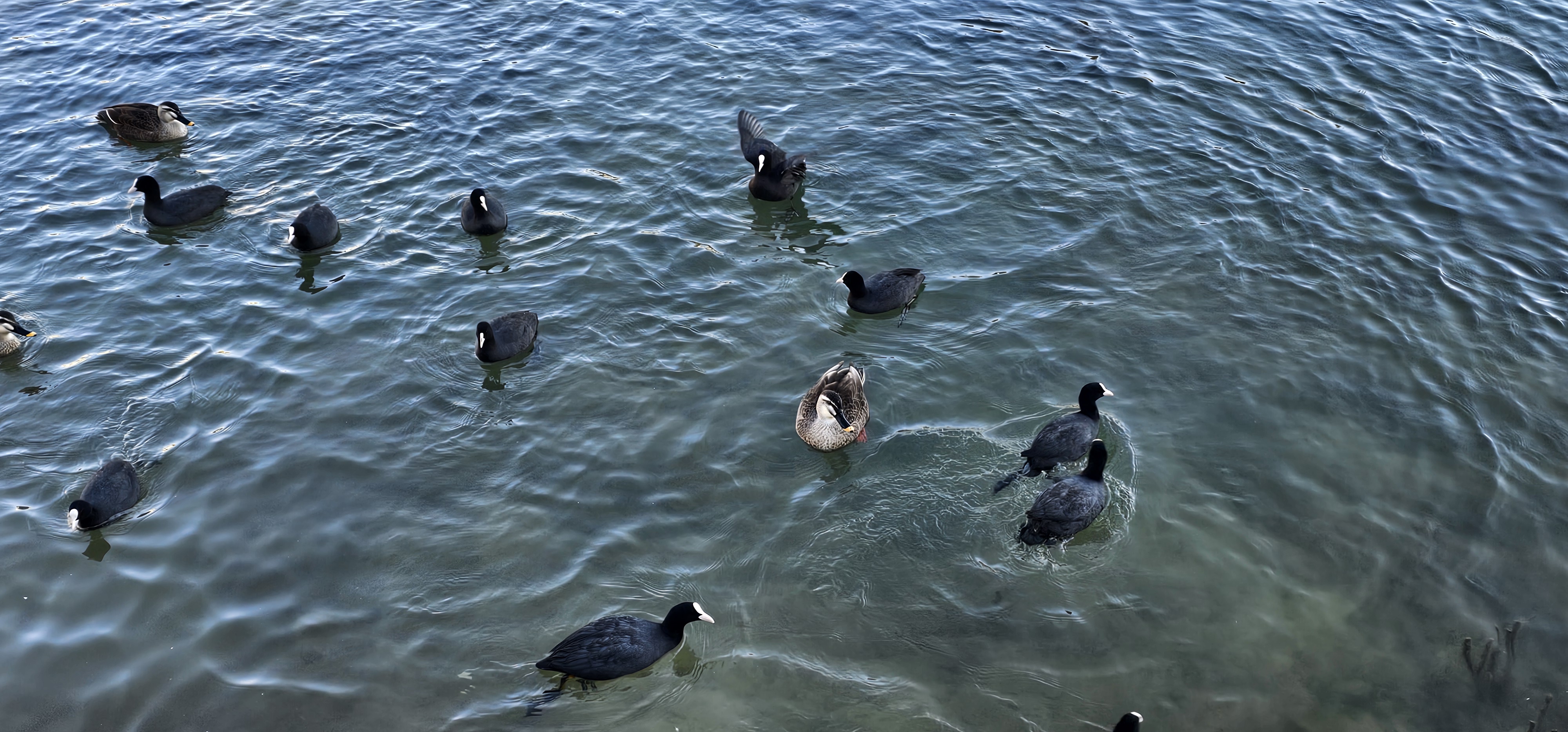 쟤들은 털에 기름이 많아서 절대로 털이 물에 젖지