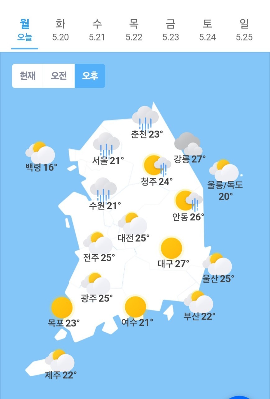 ✫청주(☀)➠(🌦) 12℃ ~ 24℃