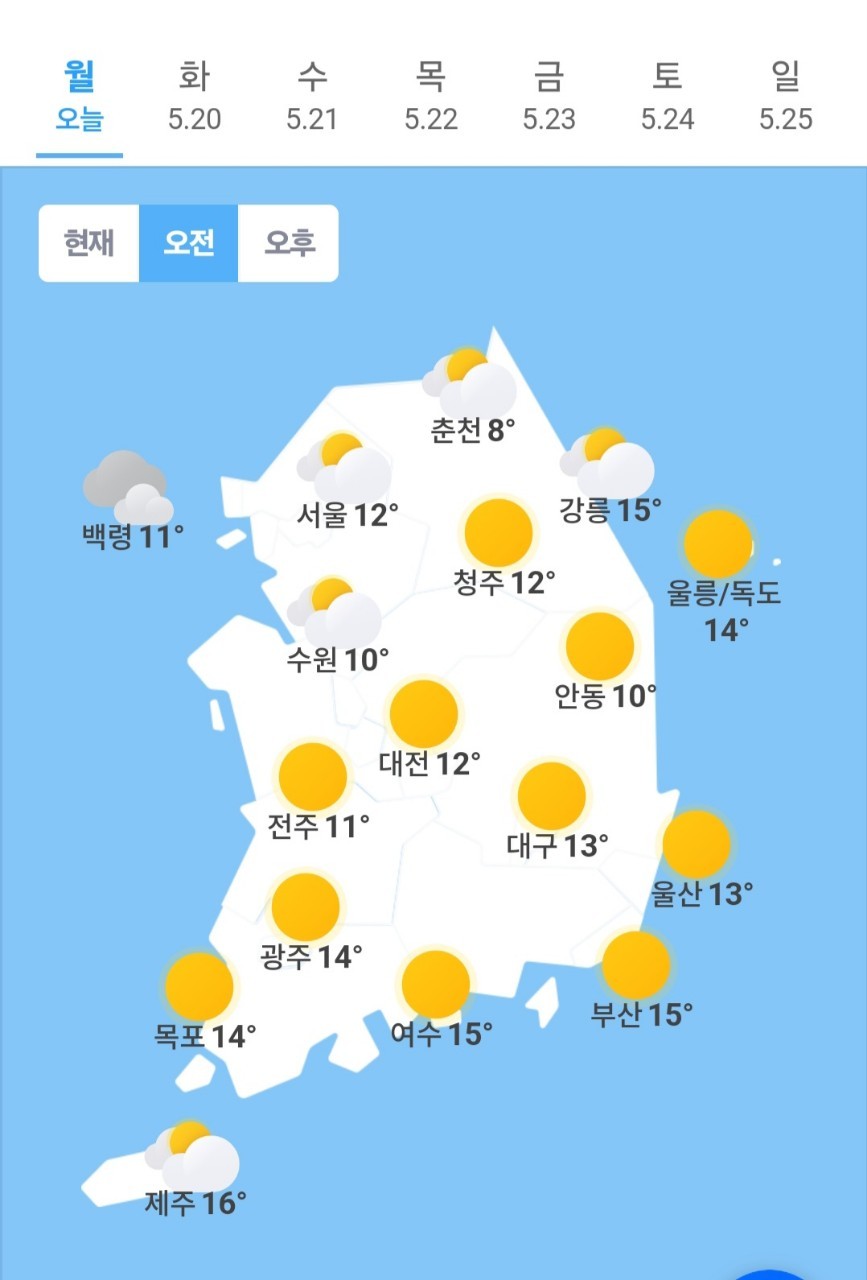 ✫대전(☀)➠(⛅) 12℃ ~ 25℃