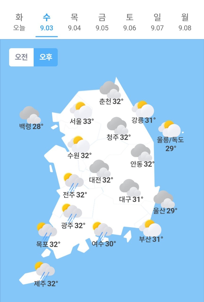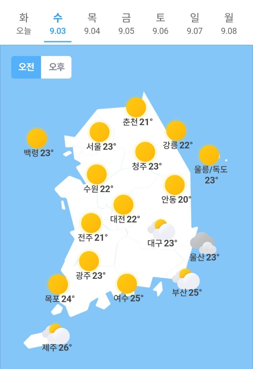 작성자기만 용용 작성시간 25.09.03 오늘의 간추린뉴스와 일기예보